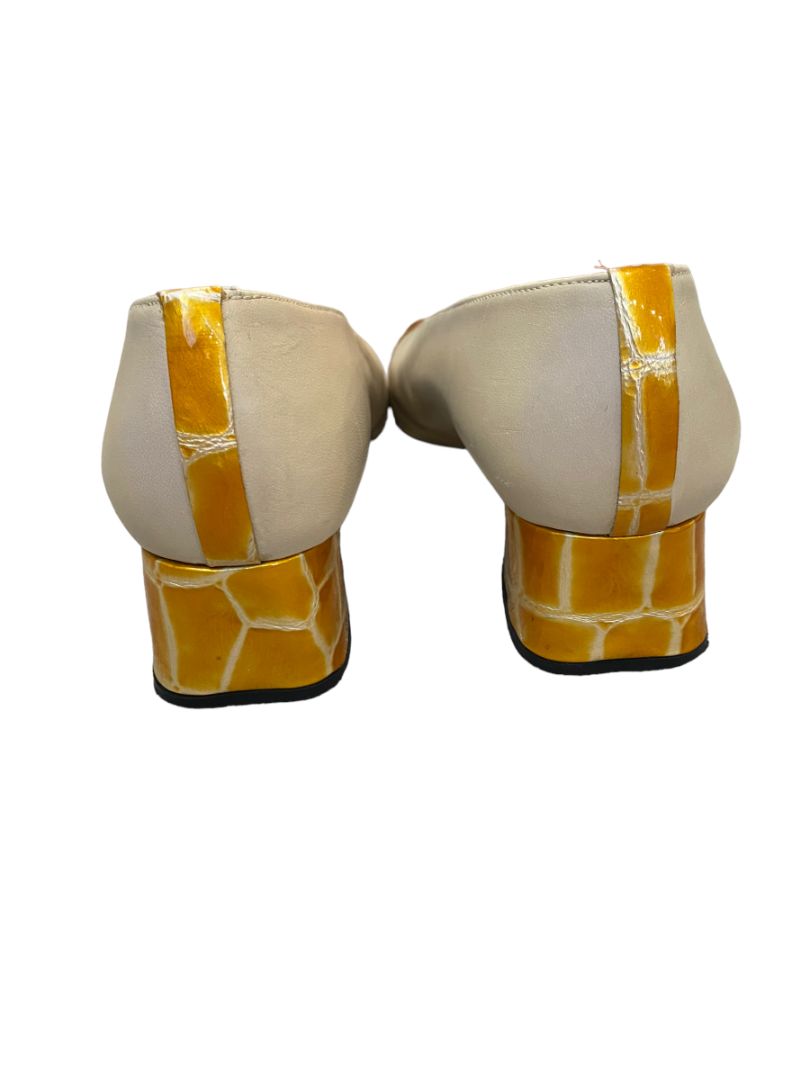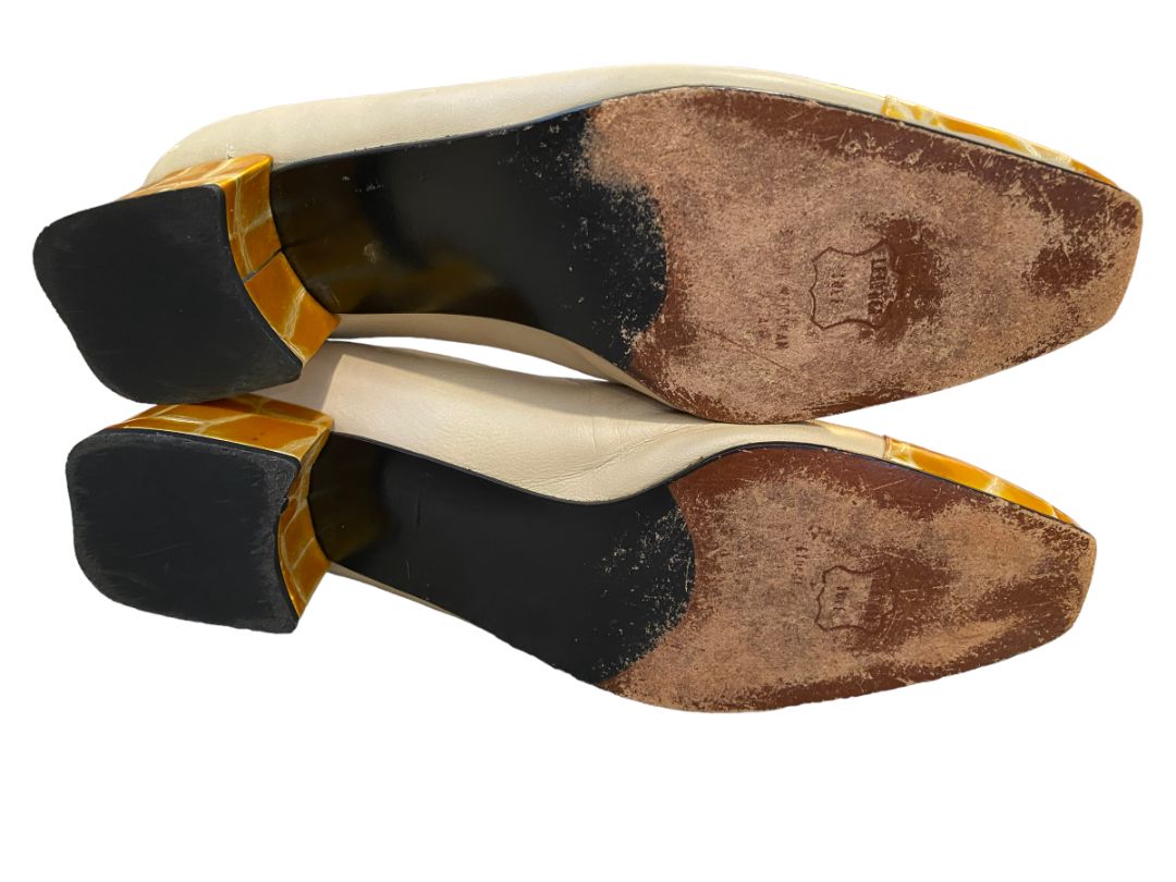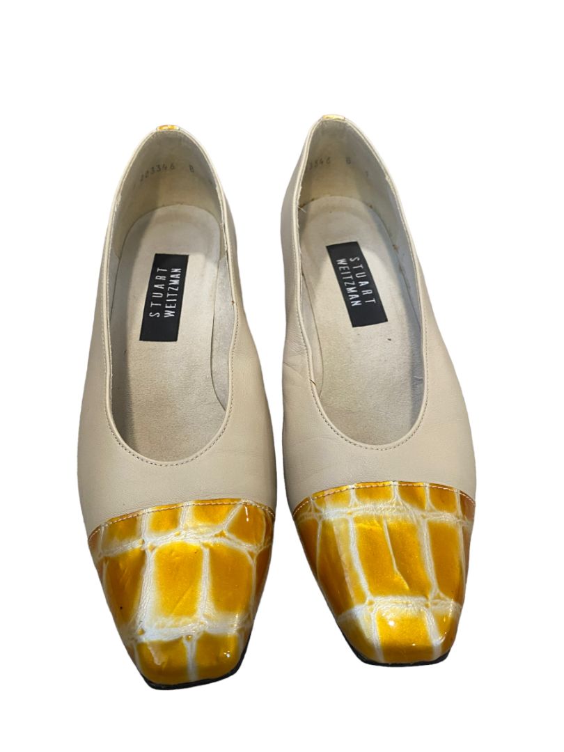 9 B Stuart Weitzman Cream Gold Dress Pumps Croc Embossed Accents