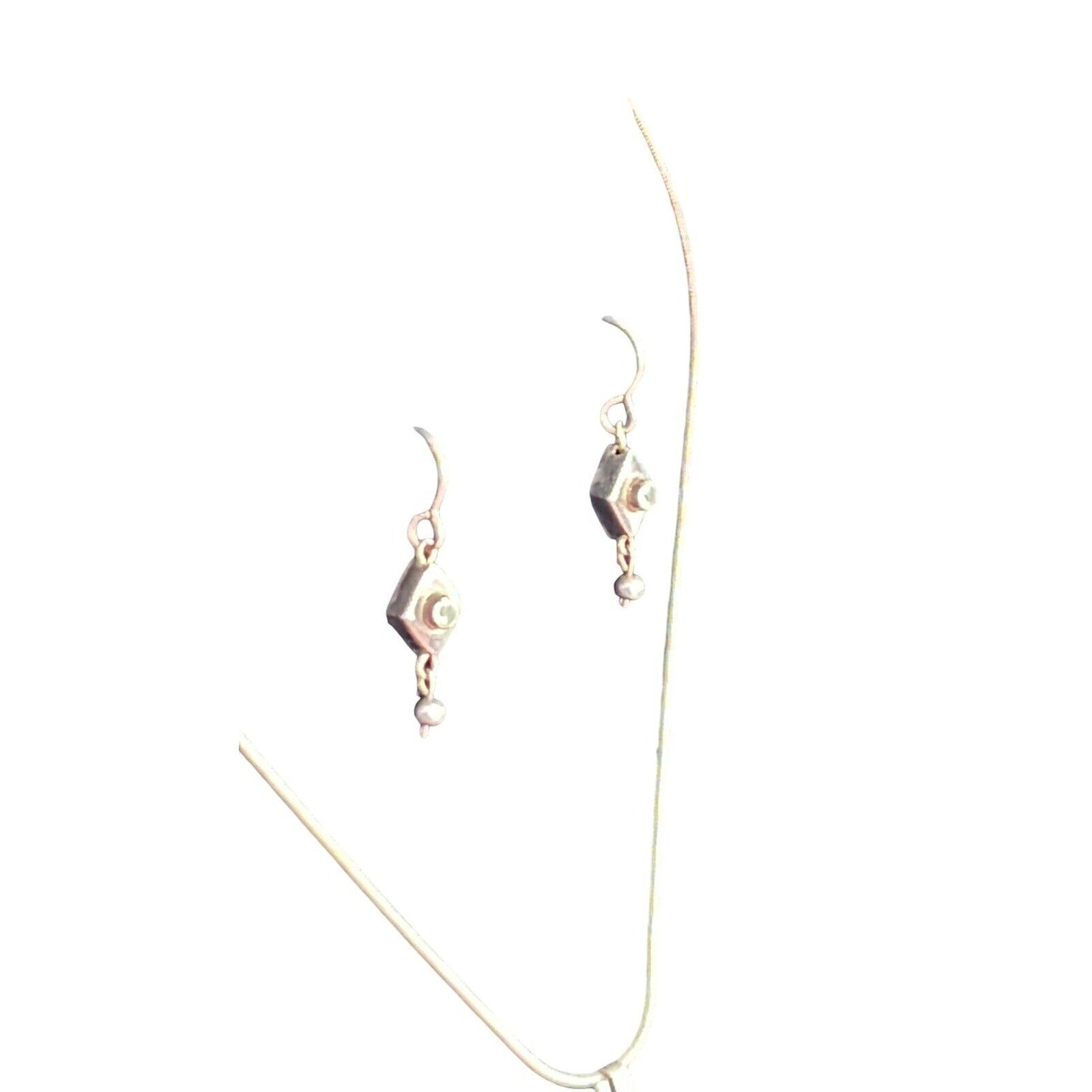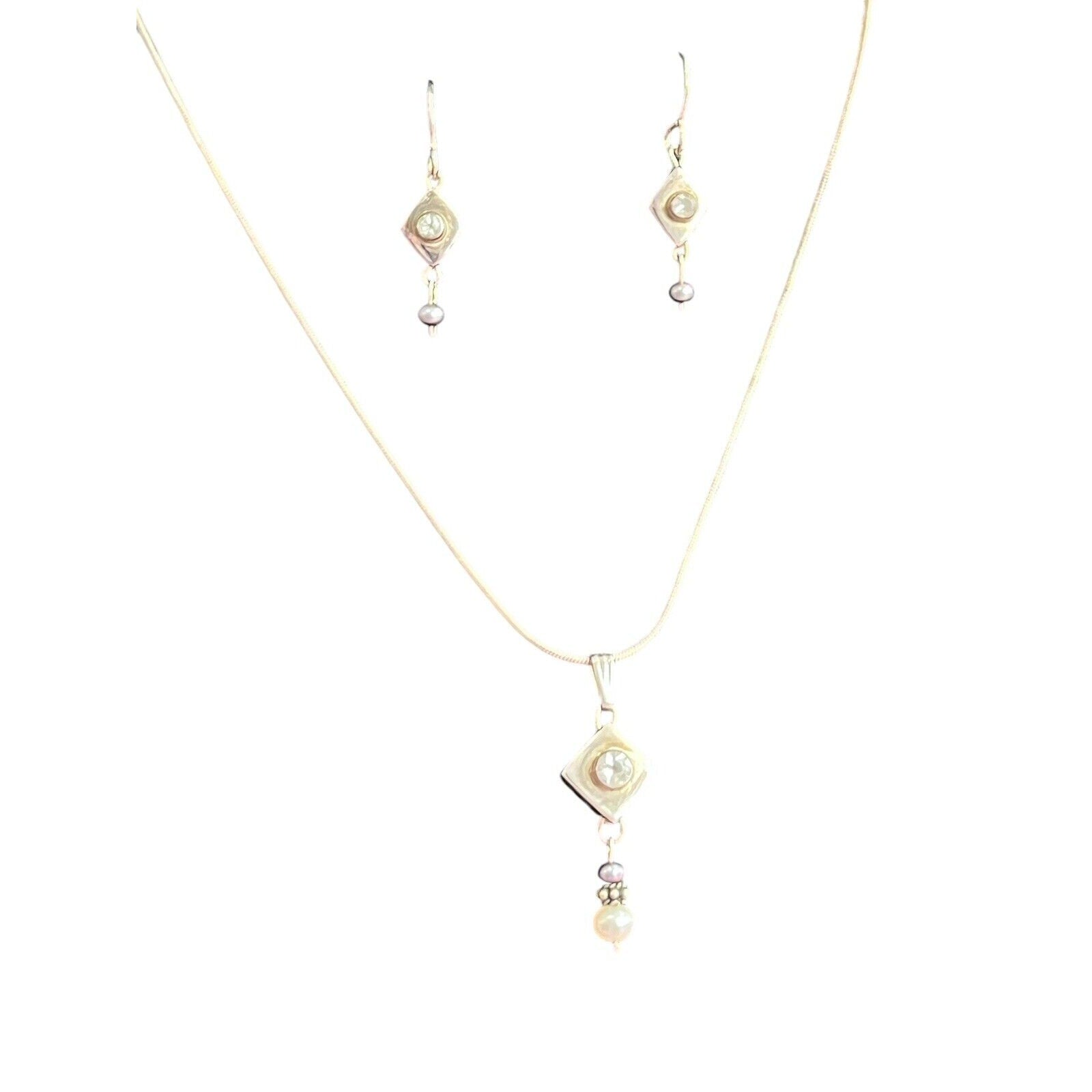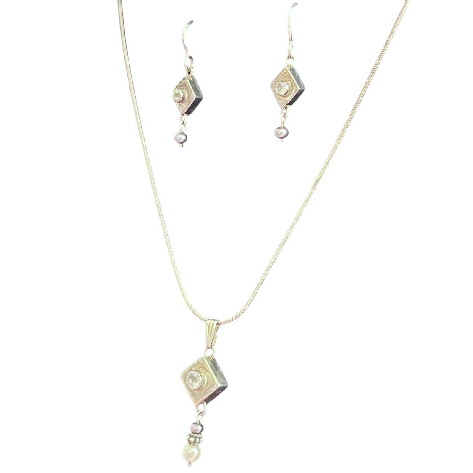 925 Sterling Silver CZ Pendant Necklace Dangle Earrings Set Faux Pearl