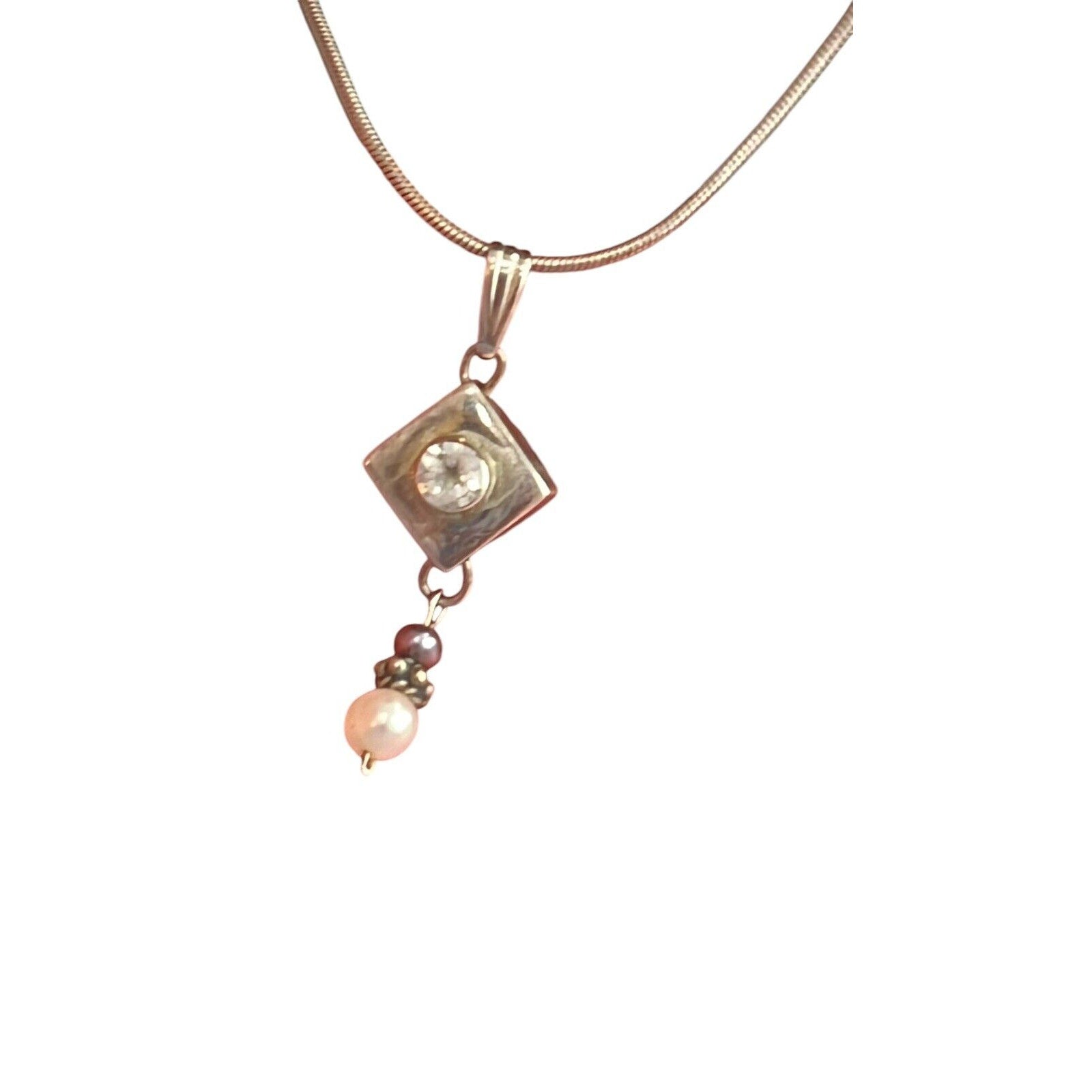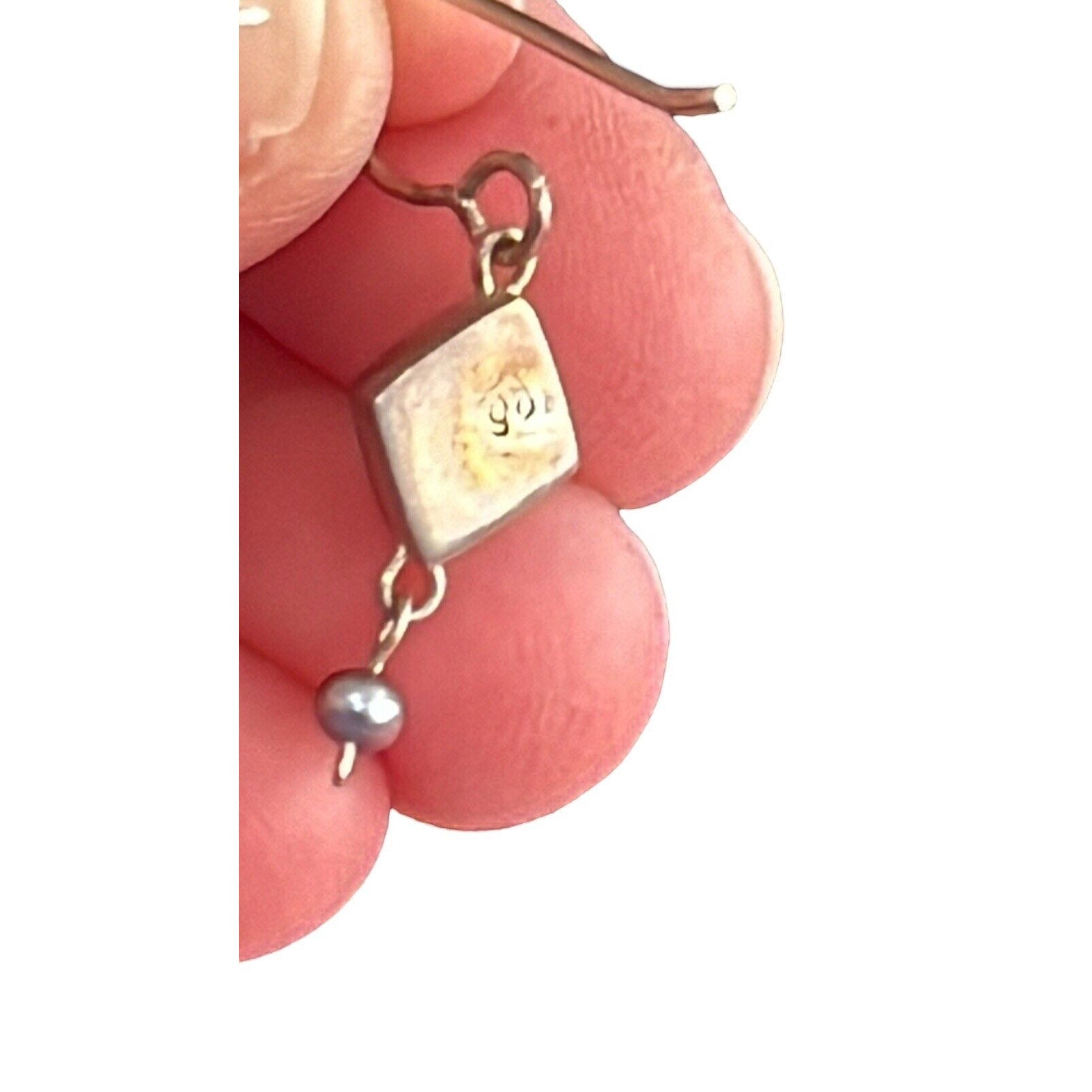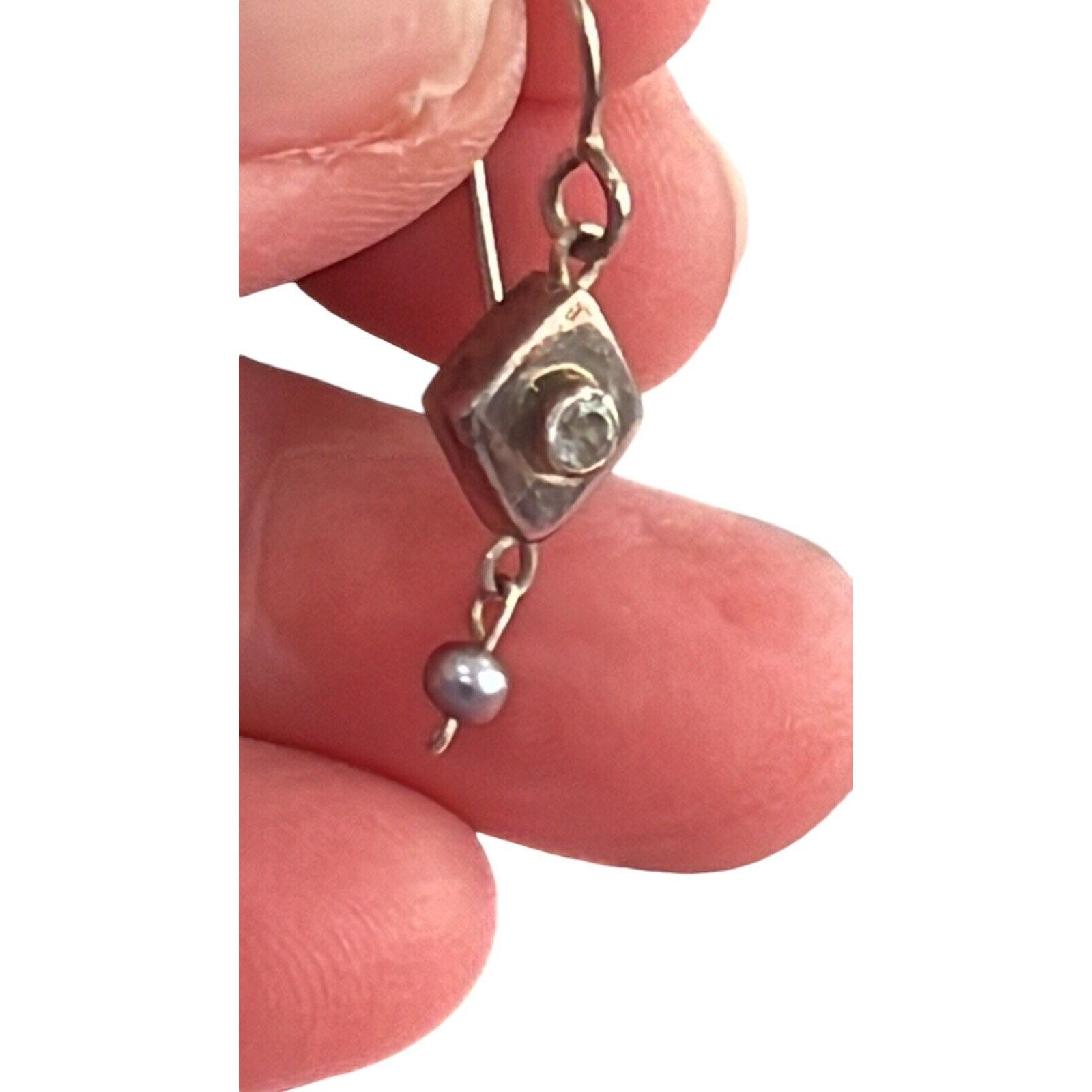 925 Sterling Silver CZ Pendant Necklace Dangle Earrings Set Faux Pearl