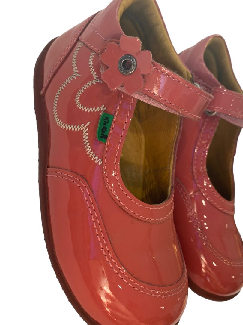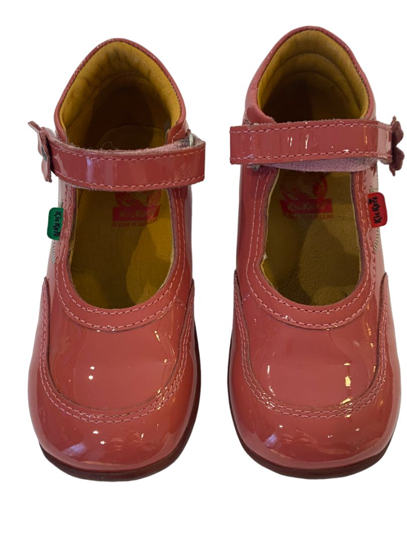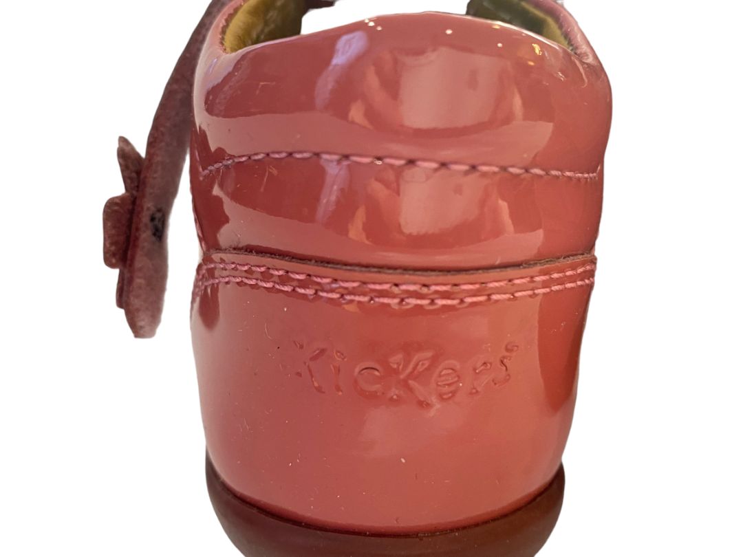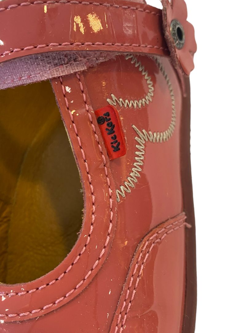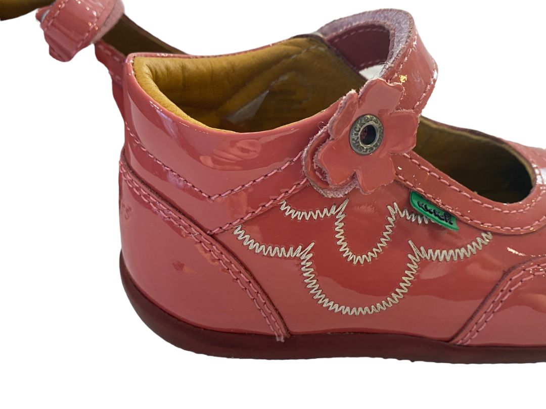 9.5 (26 eu) KicKers Pink Patent Mary Jane Booties Shoes Flower Design Rubber Sole Hook And Loop
