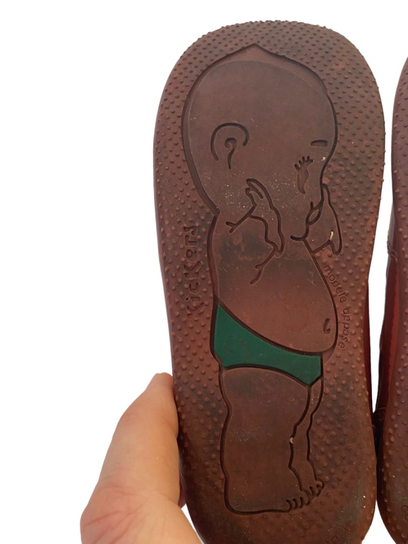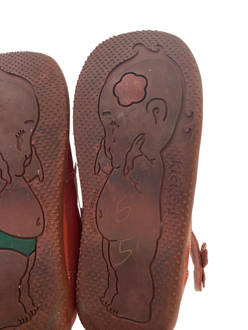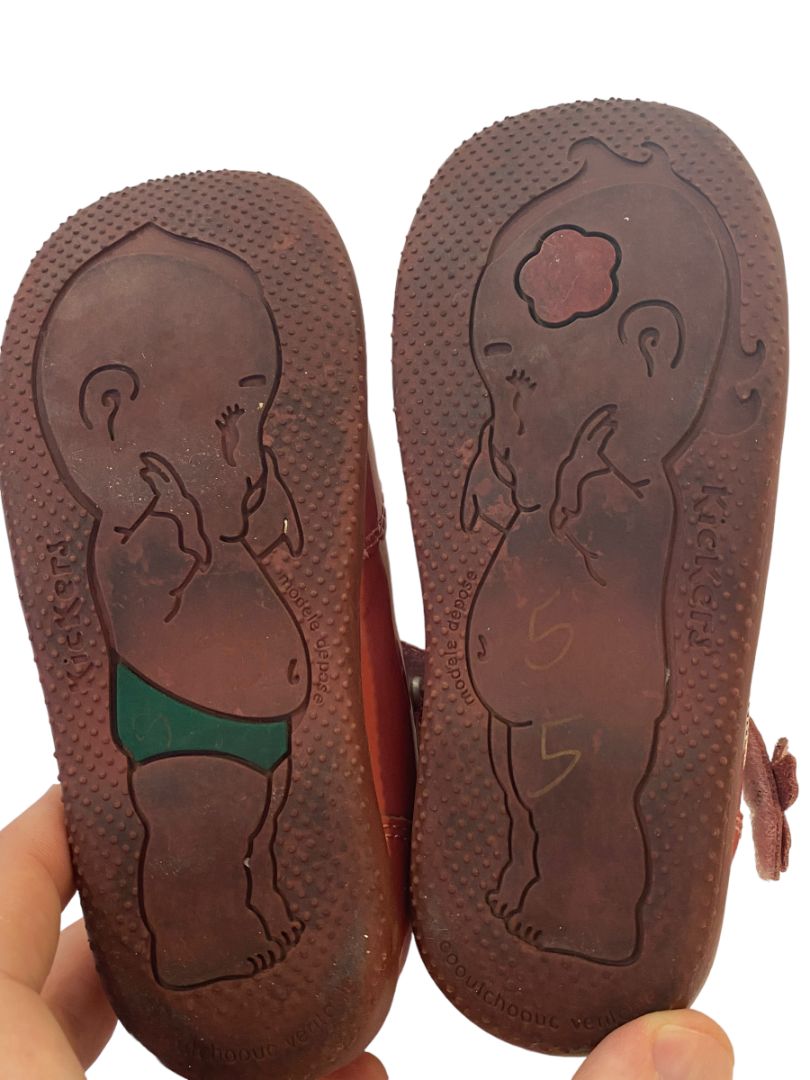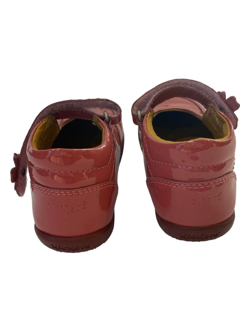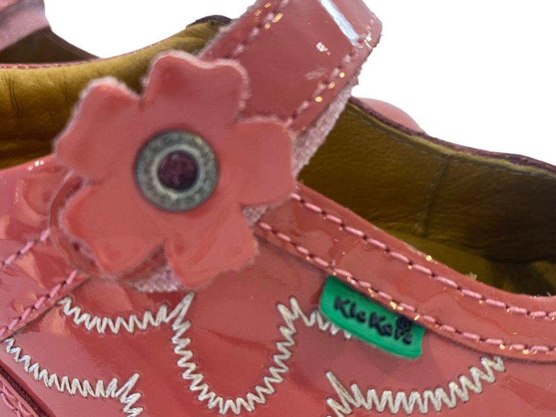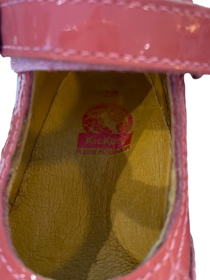 9.5 (26 eu) KicKers Pink Patent Mary Jane Booties Shoes Flower Design Rubber Sole Hook And Loop