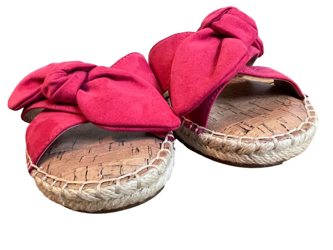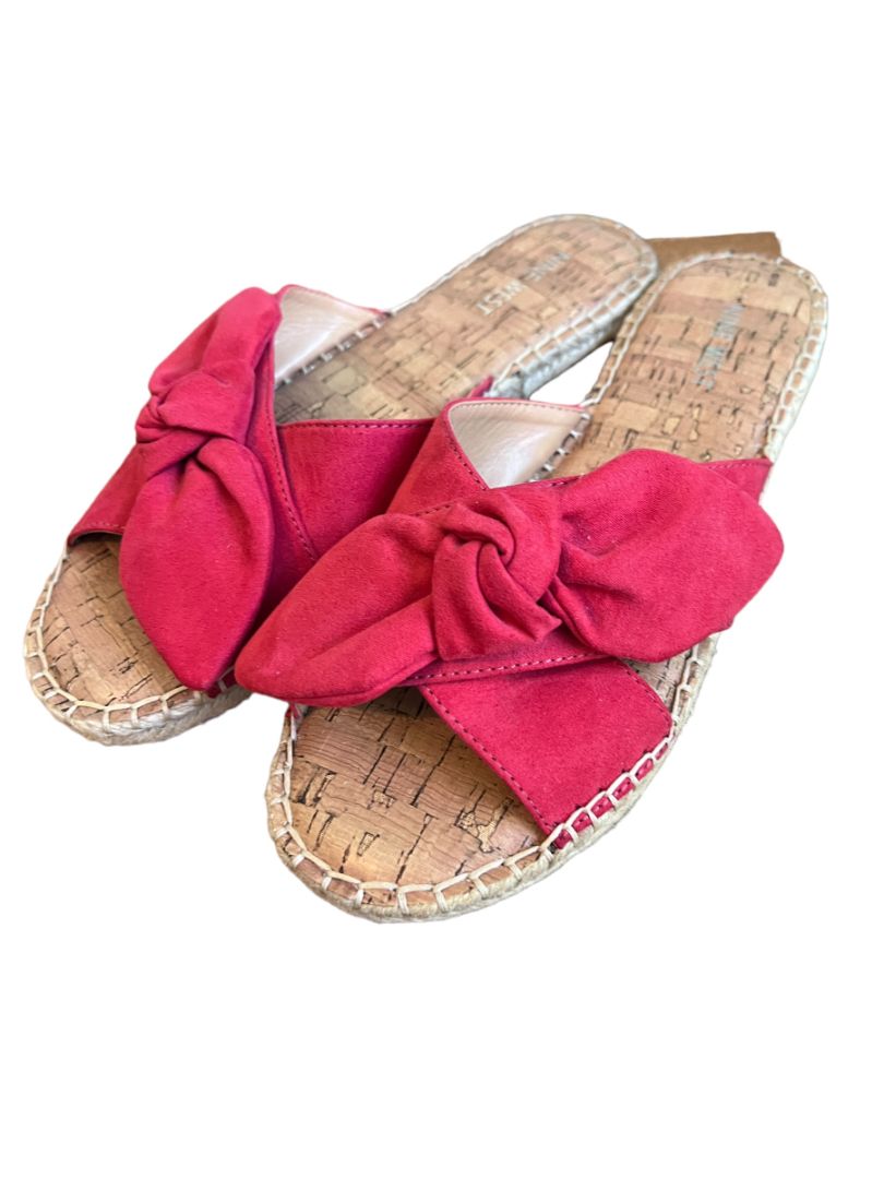 9.5 M Nine West Slide Sandals Womens Bellah Espadrille Bow Red