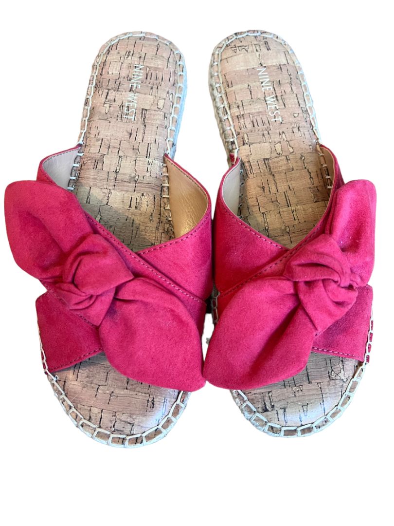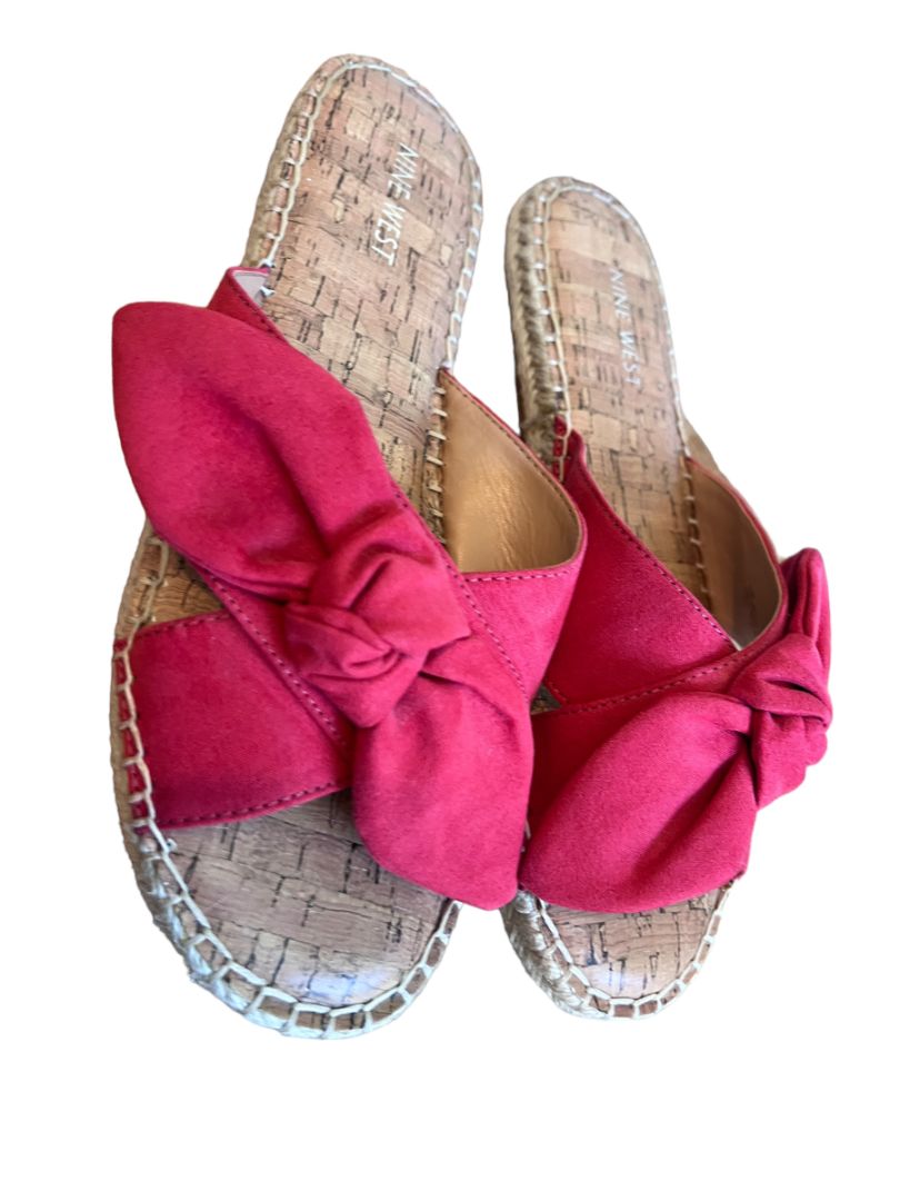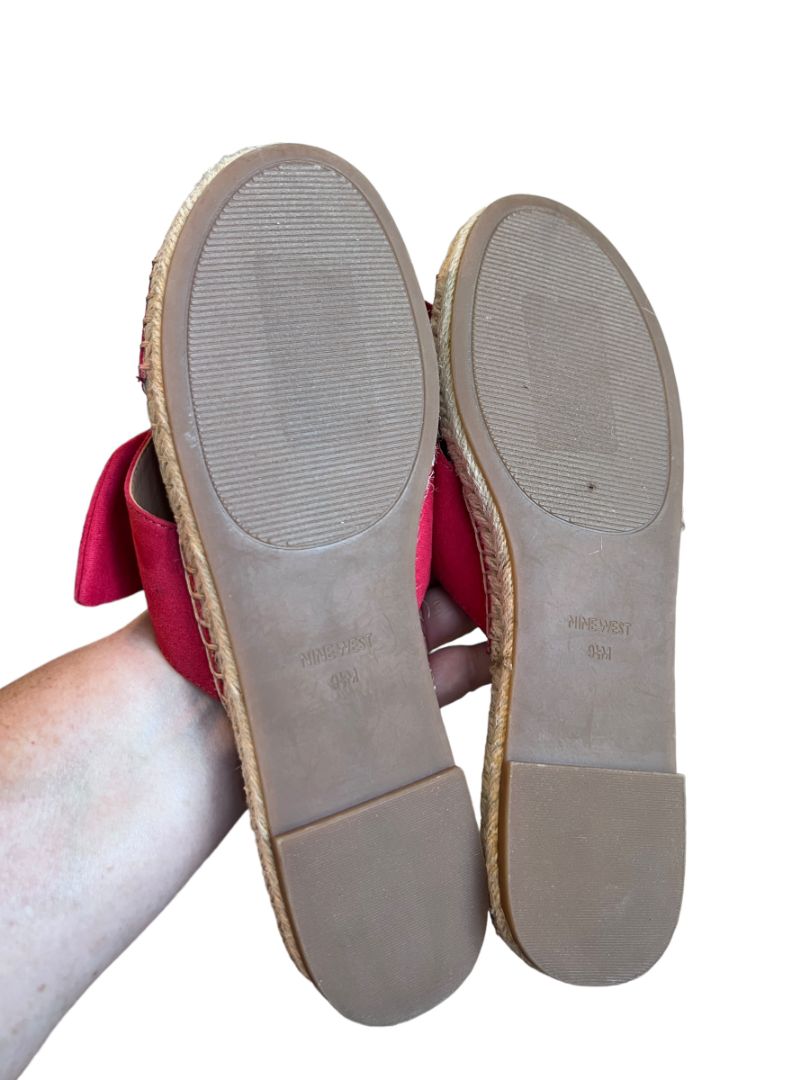 9.5 M Nine West Slide Sandals Women's Bellah Espadrille Bow Red