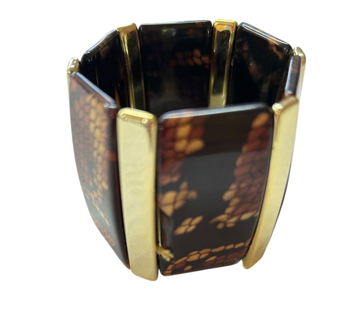 Acrylic Stretch Statement Bracelet Reptile Print 1.8" Wide