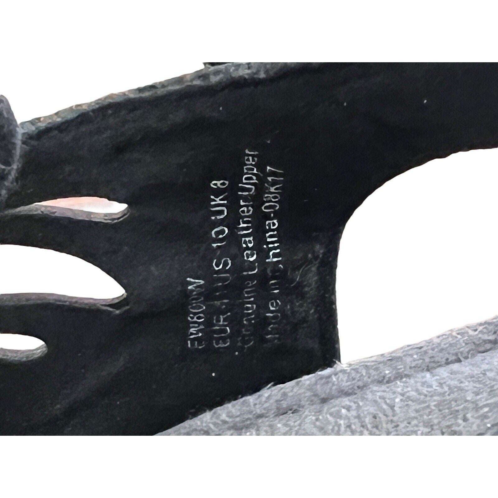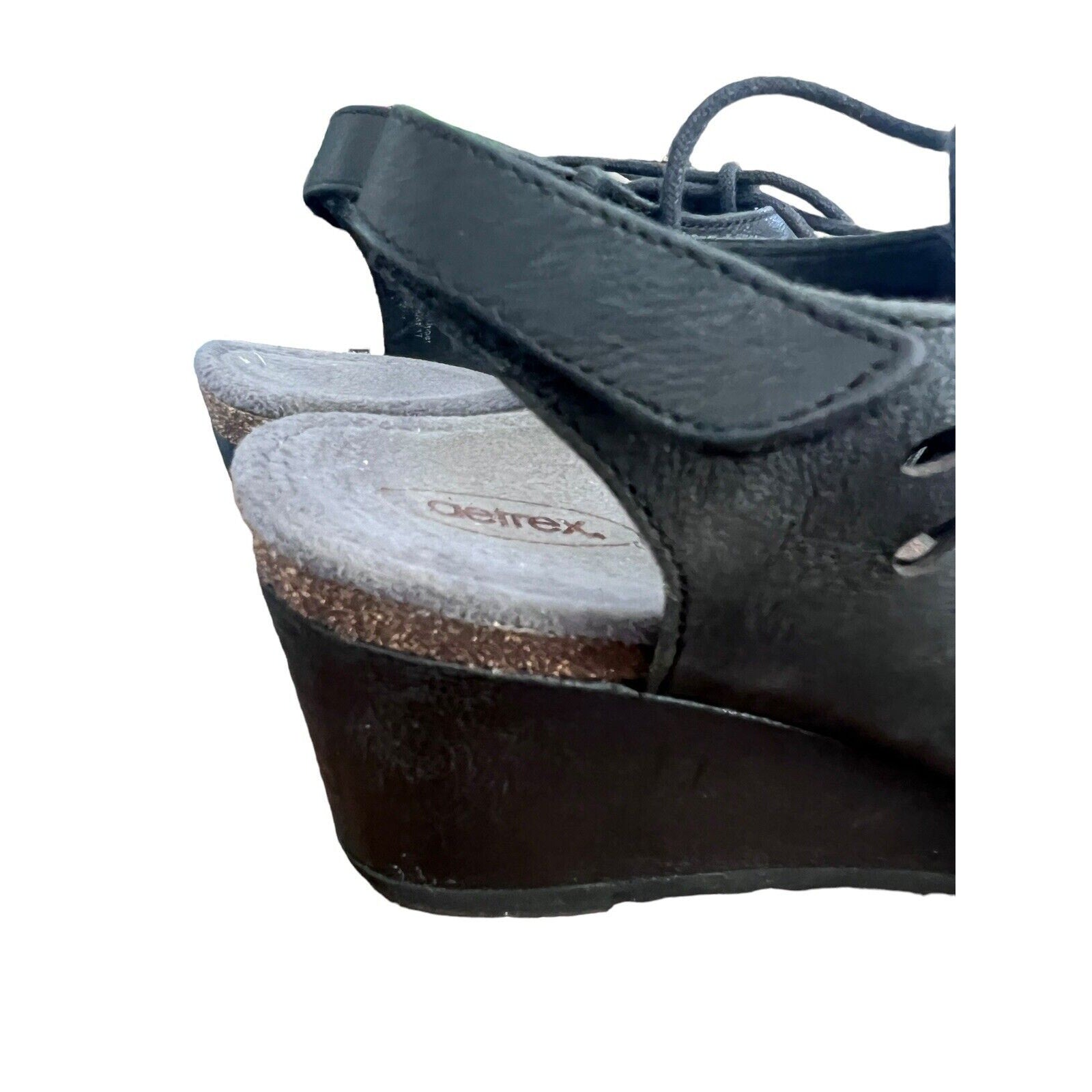 AETREX Women's Giselle Black Leather Lace Up Wedge Sandals Cut Outs Sz 10/41
