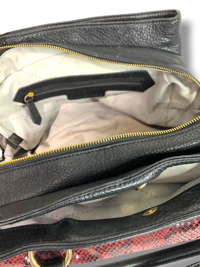 Aimee Kestenberg Satchel Handbag Black Leather Red Embossed Snakeskin Shoulder Strap Removable