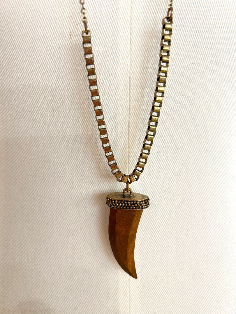 Aldo Faux Wooden Horn Pendant Necklace 26-38 Inch Copper Color
