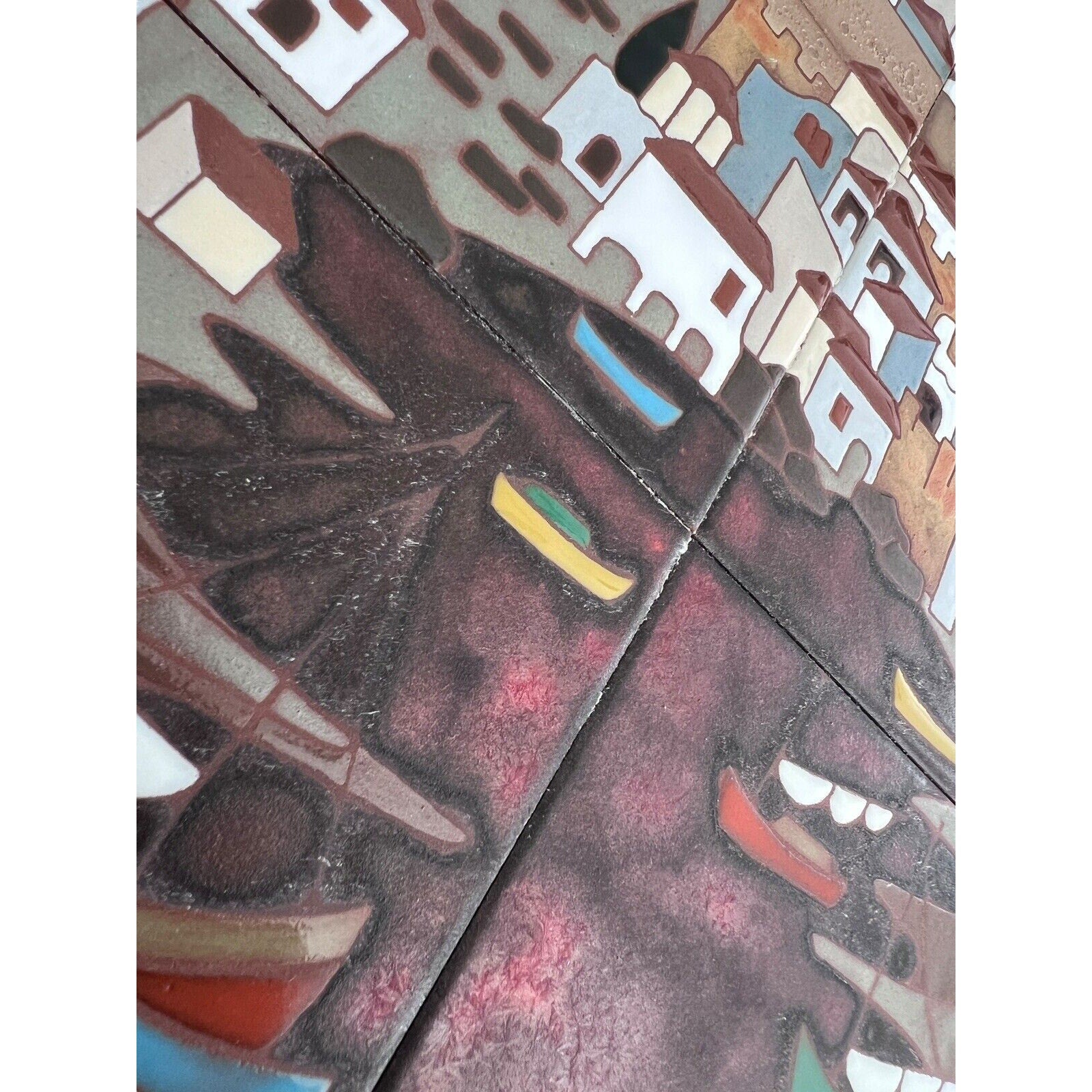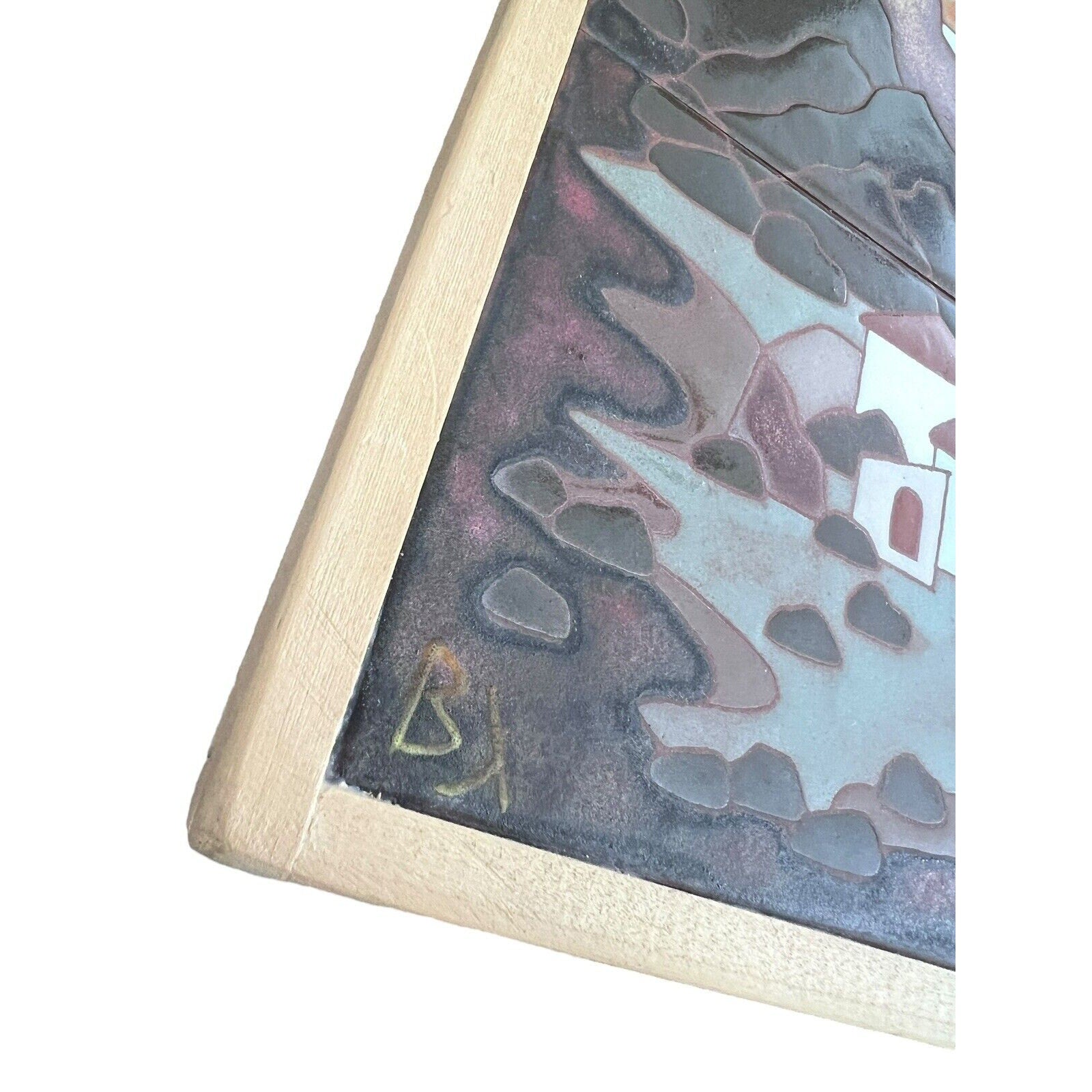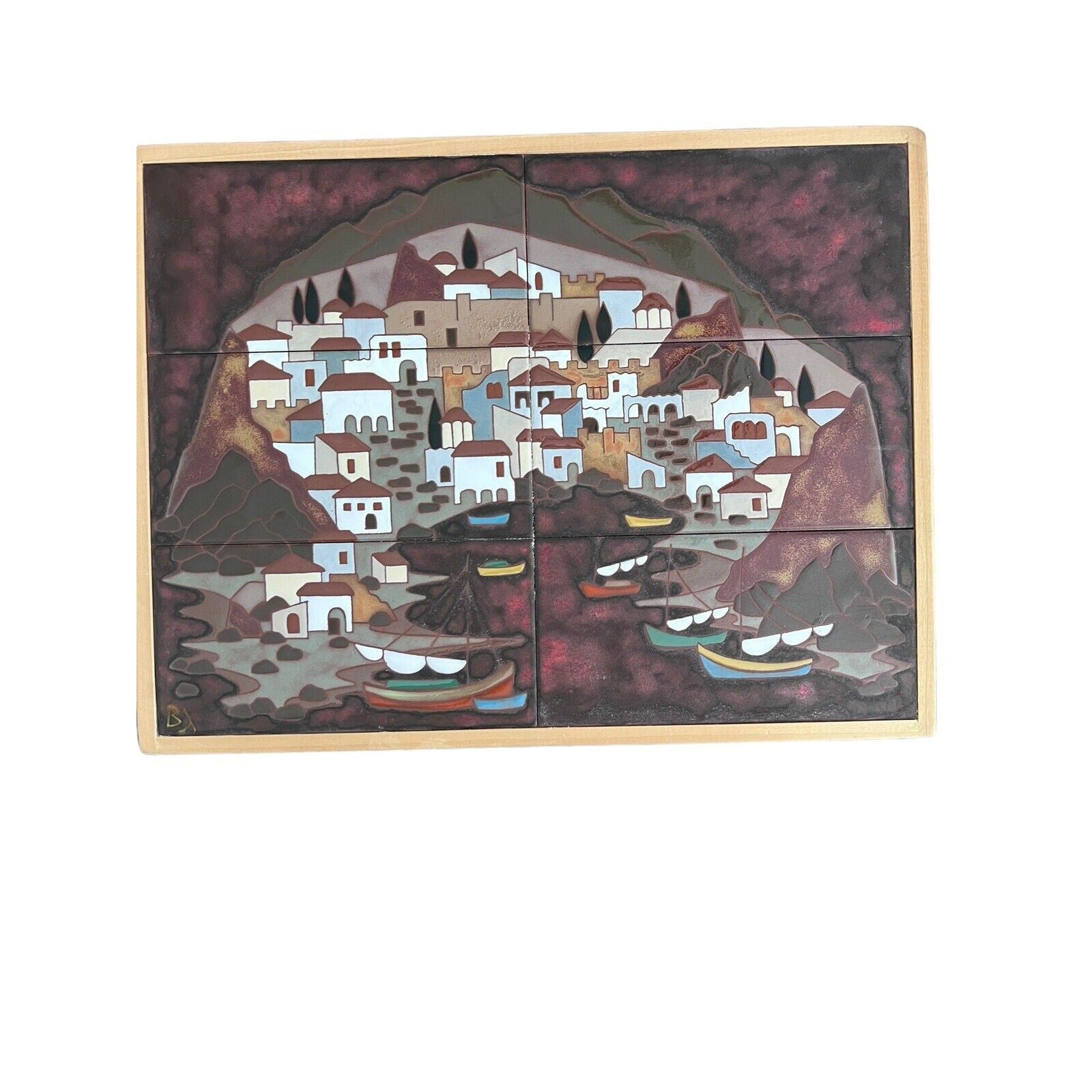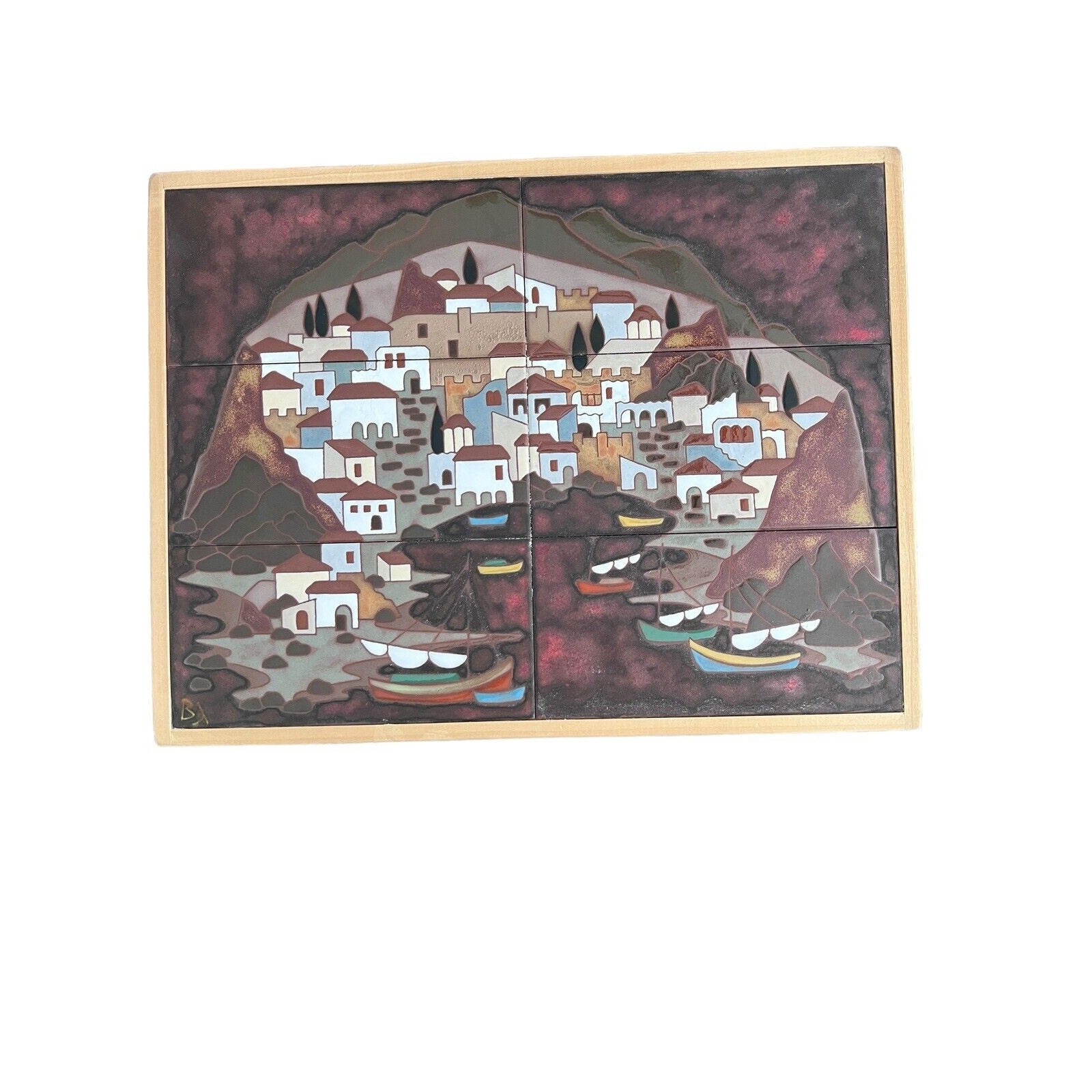 Angelos Tsakirakis Style Greek Framed Wall Art Tile Plaque Terracotta MCM Signed
