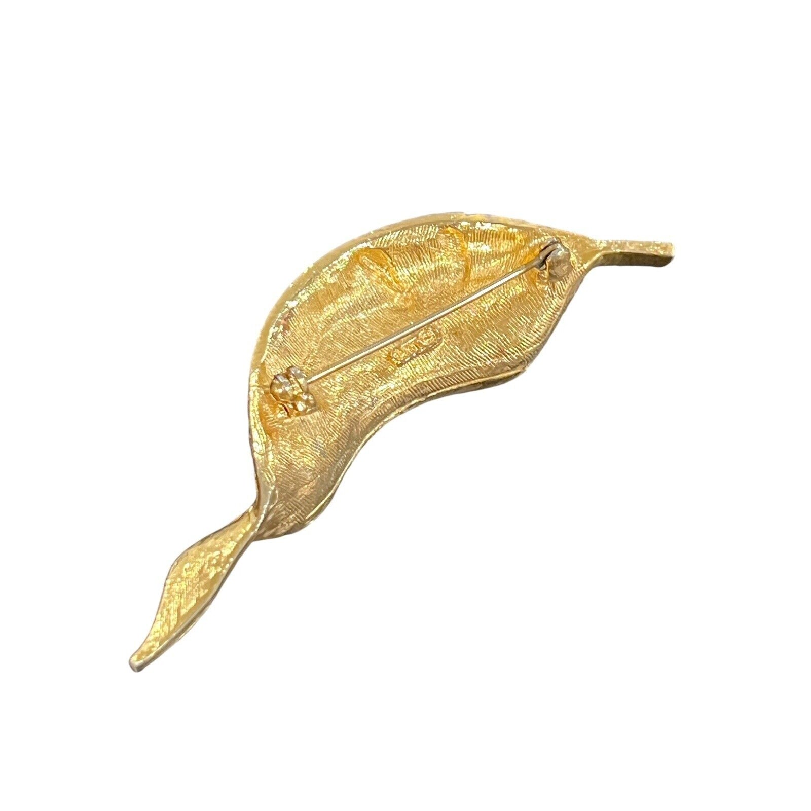 ART Signed Arthur Pepper Blue Red Rhinestone Leaf Brooch Gold Tone Pin