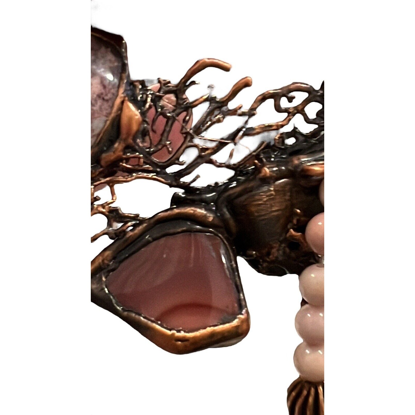 Artsy One Of A Kind Agate Geode Amber Bead Necklace Handmade Copper 24”