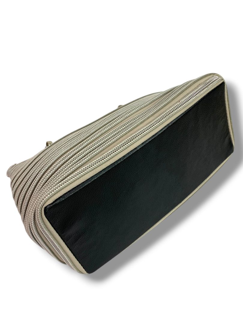 Bam Bags Zipper Purse Beige Silver Tote Bag Purse Flat Bottom