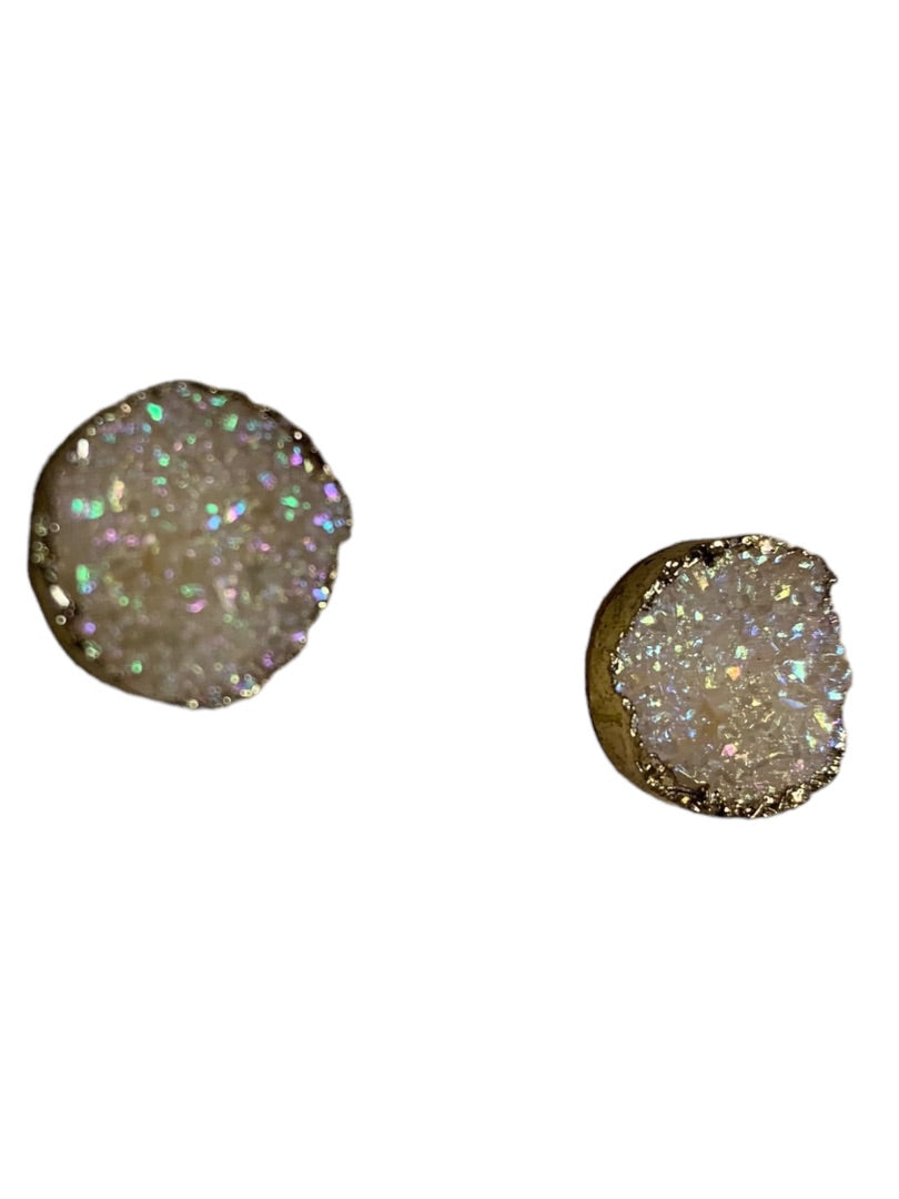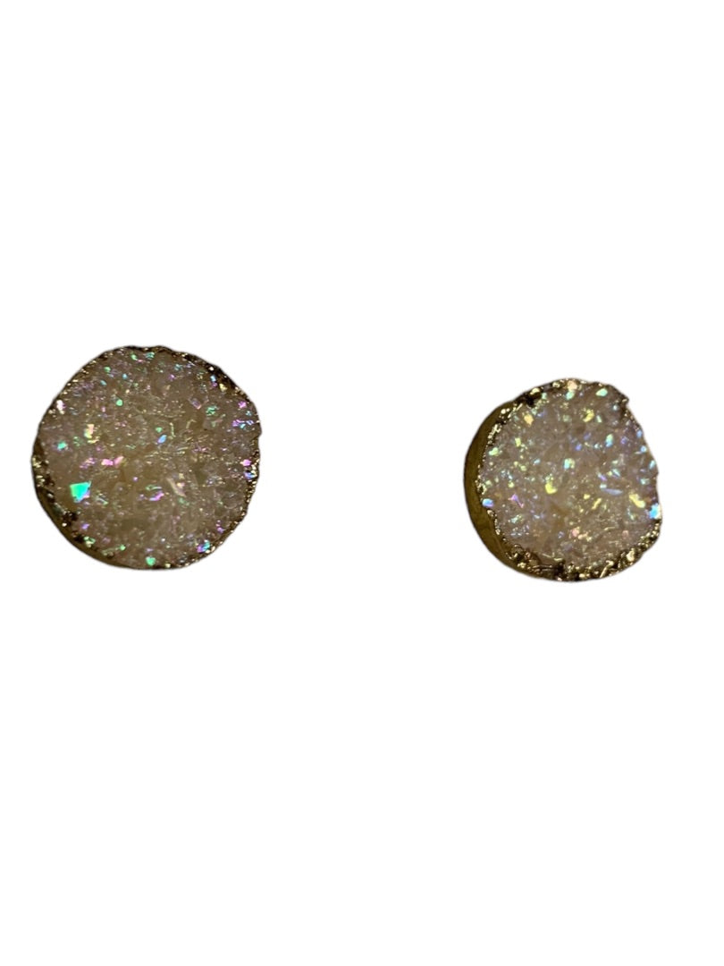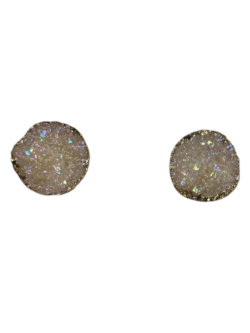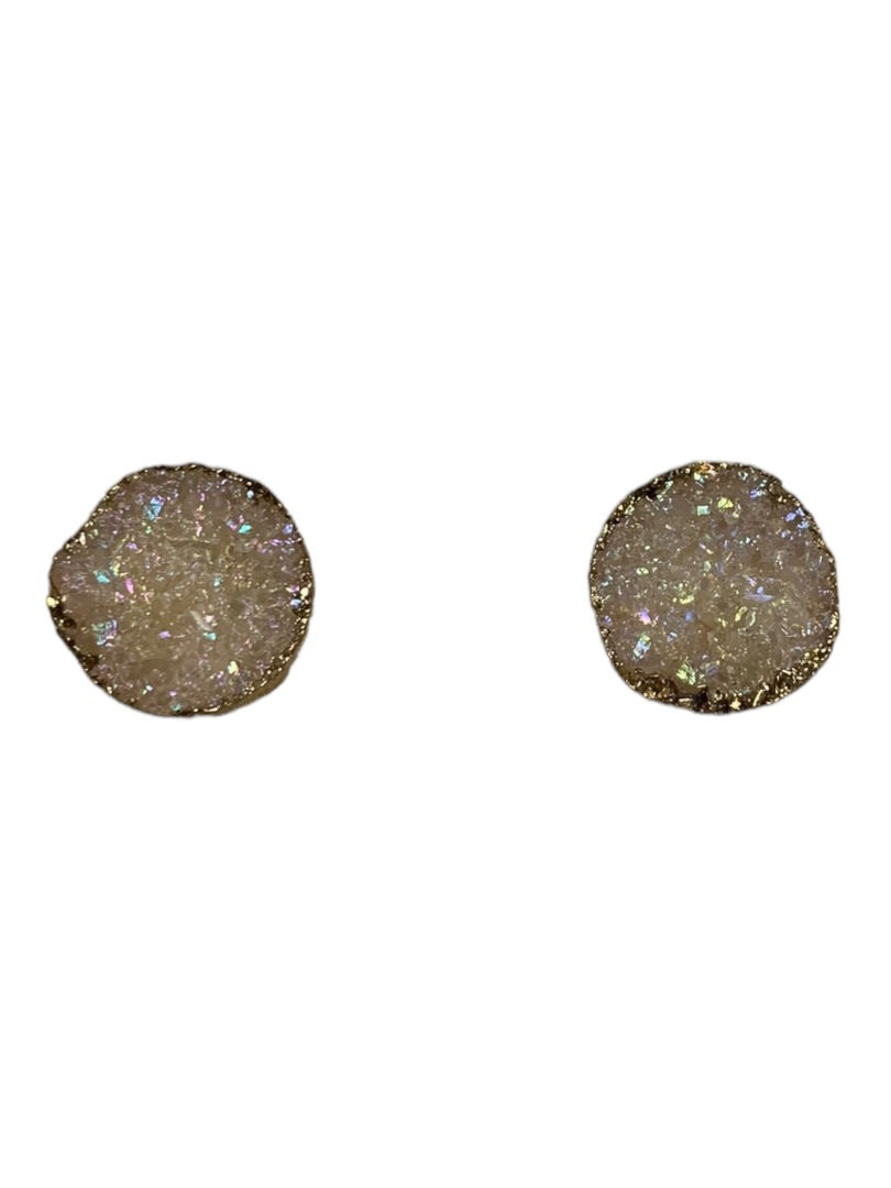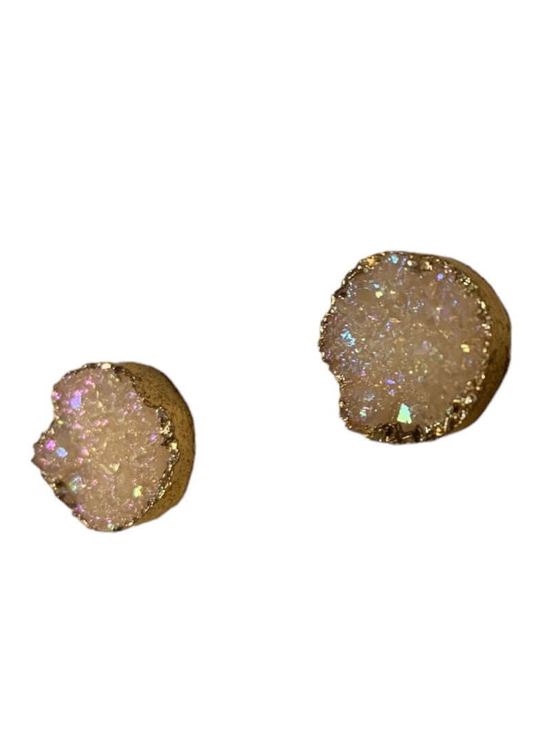 Blush Pink Stone Cluster Crystal Earrings Goldtone Trim Post Pierced .5" Diameter