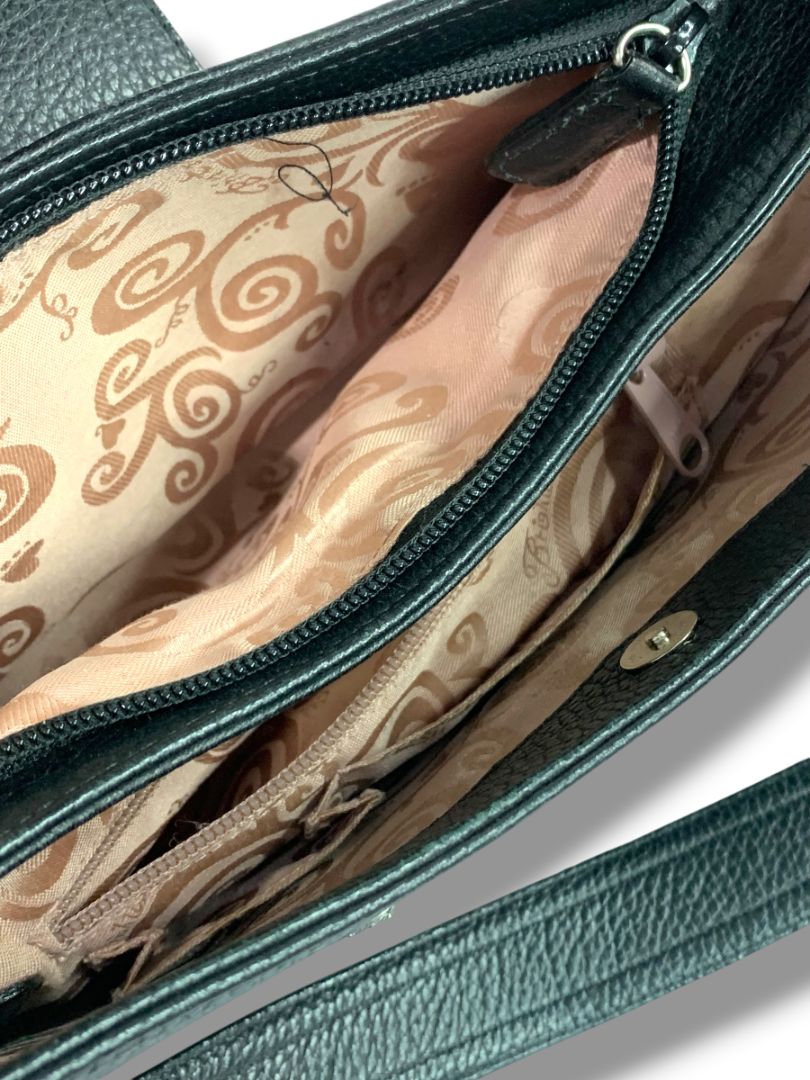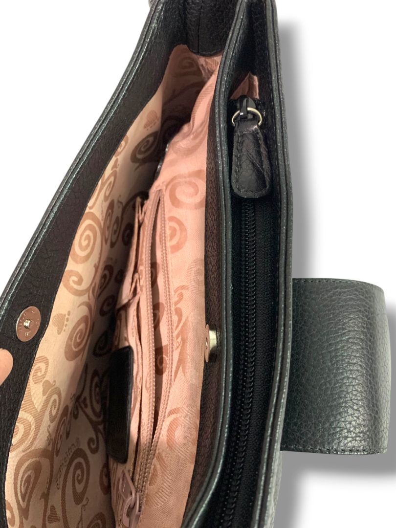 Brighton Black Pebbled Leather Handbag Shoulderbag Hobo Silvertone Hardware