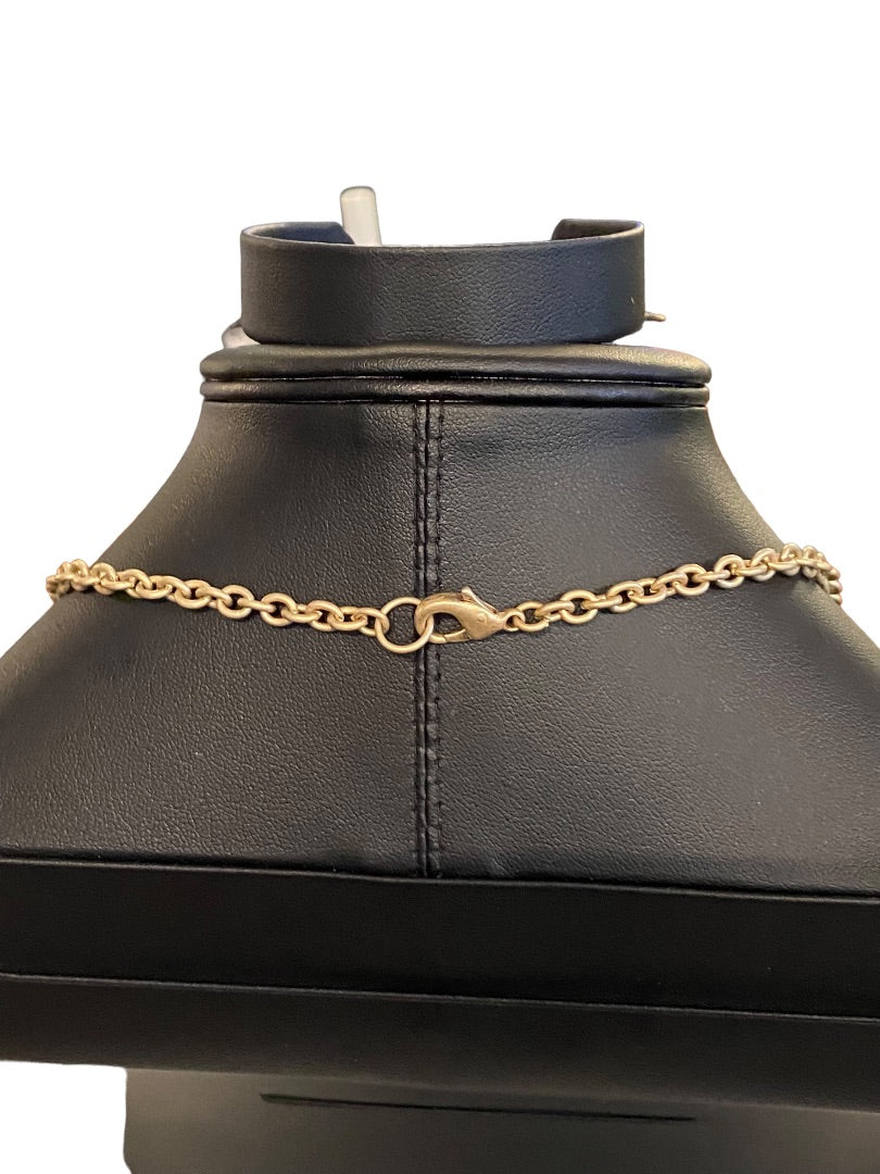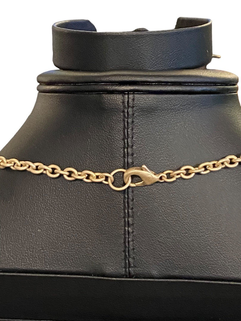 Brushed Goldtone Beaded Double Strand Necklace 17.5"Beaded 3" Drop