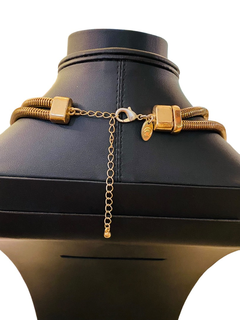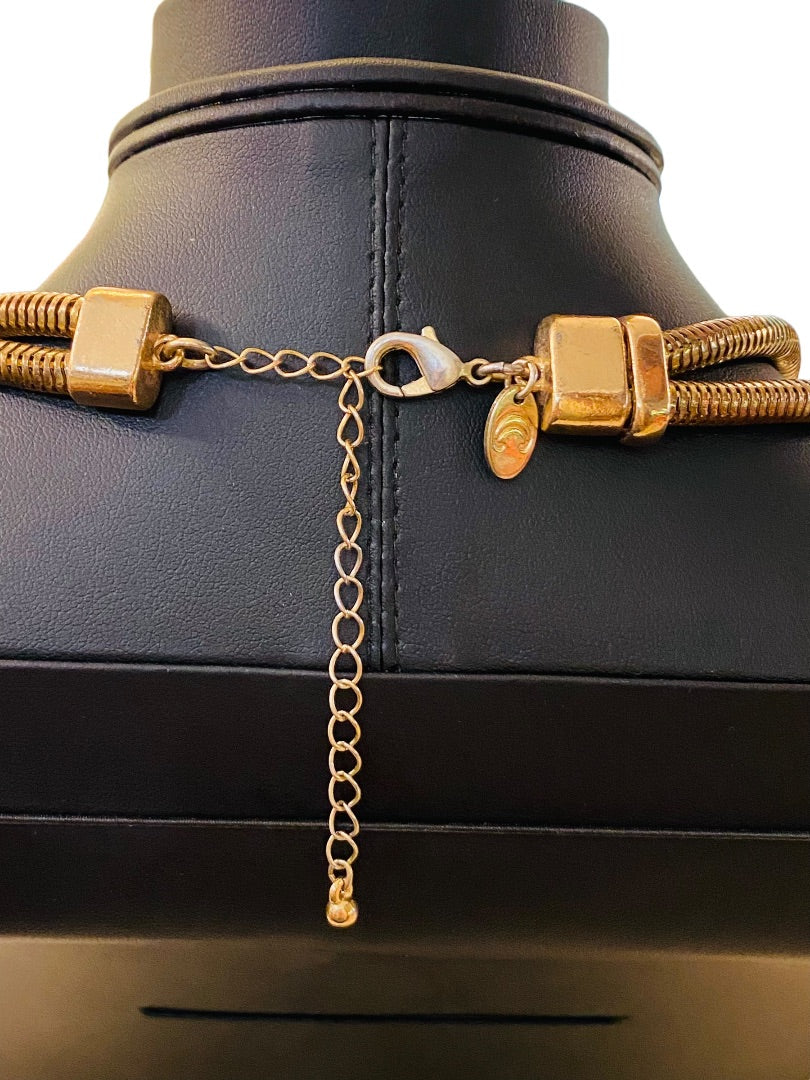 Charming Charlie Goldtone Statement Necklace 17-21" Dual Snake Chain