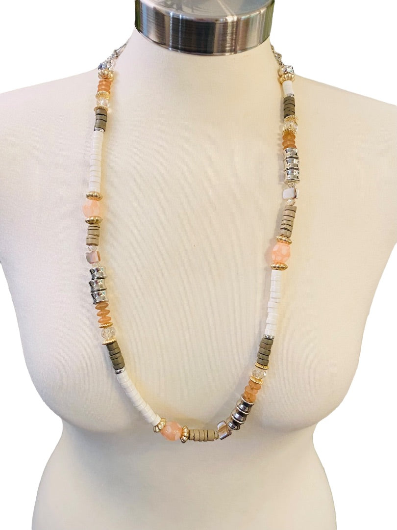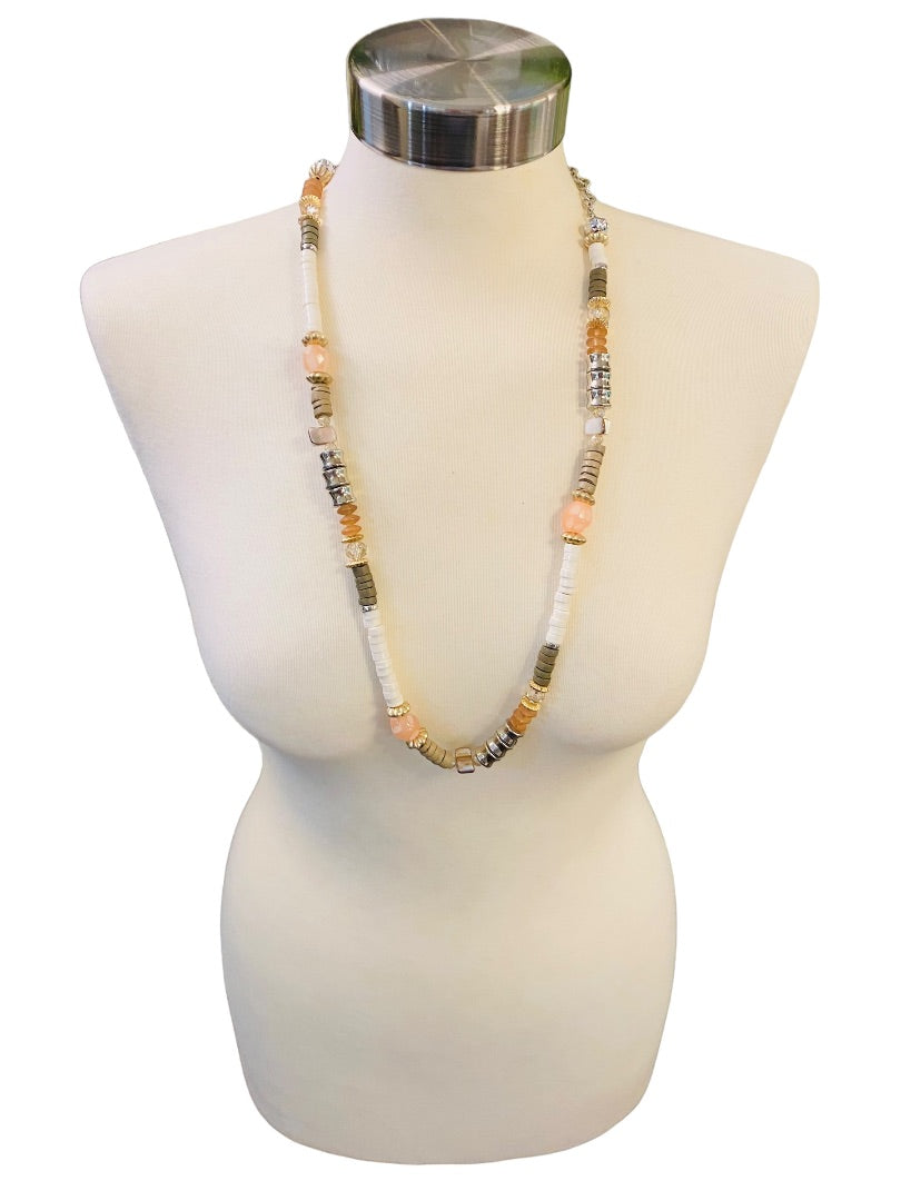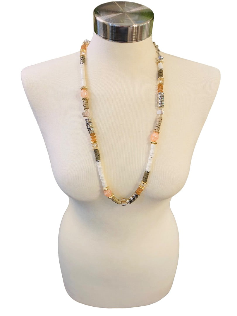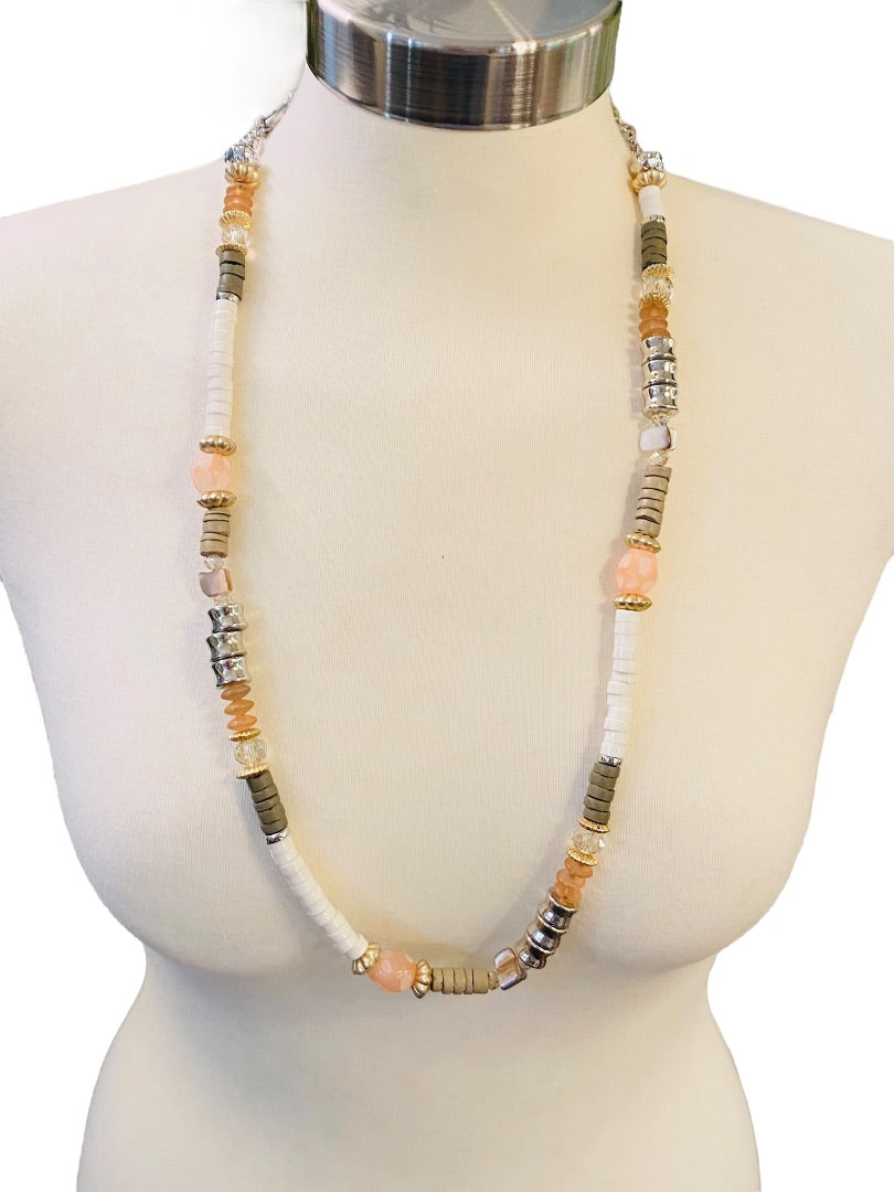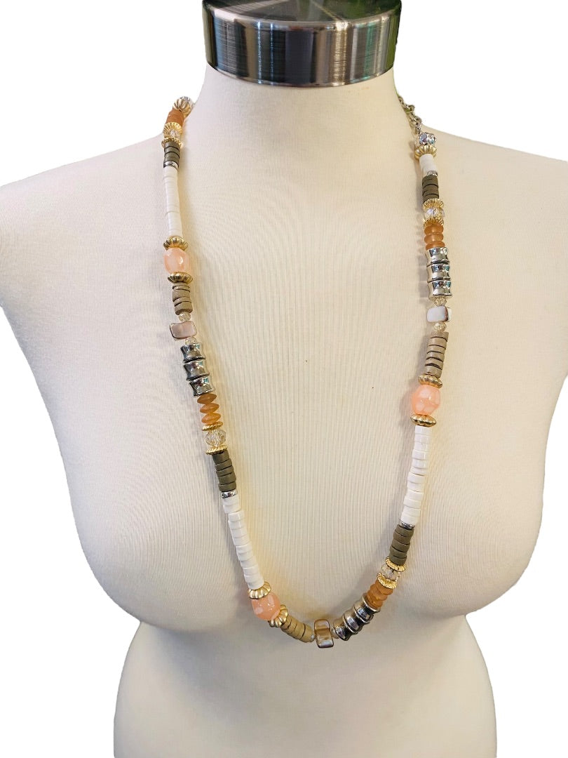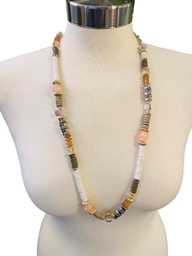Chico's Mixed Metals Pink Brown Silvertone Lobster Clasp 37-40"
