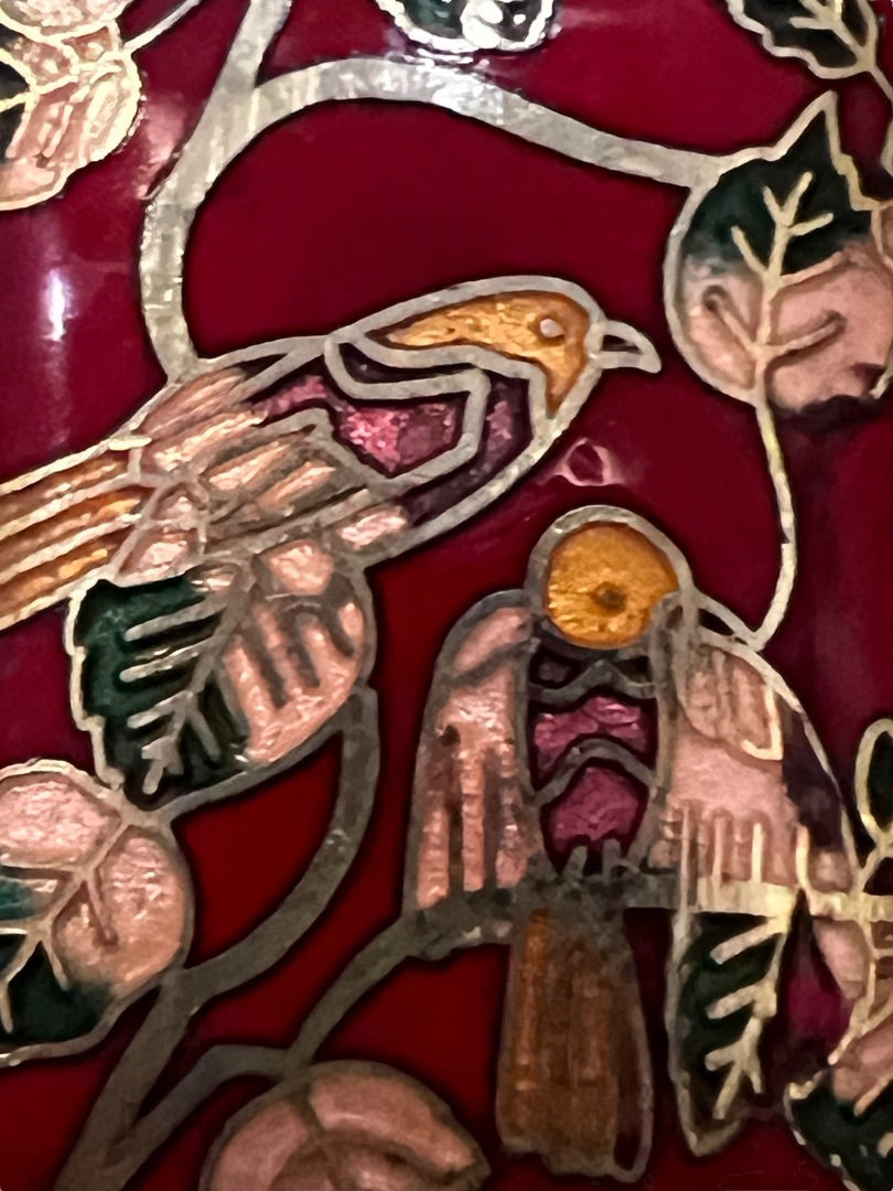Cloisonné Rectangle Pendant Charm Red Birds Floral 3D