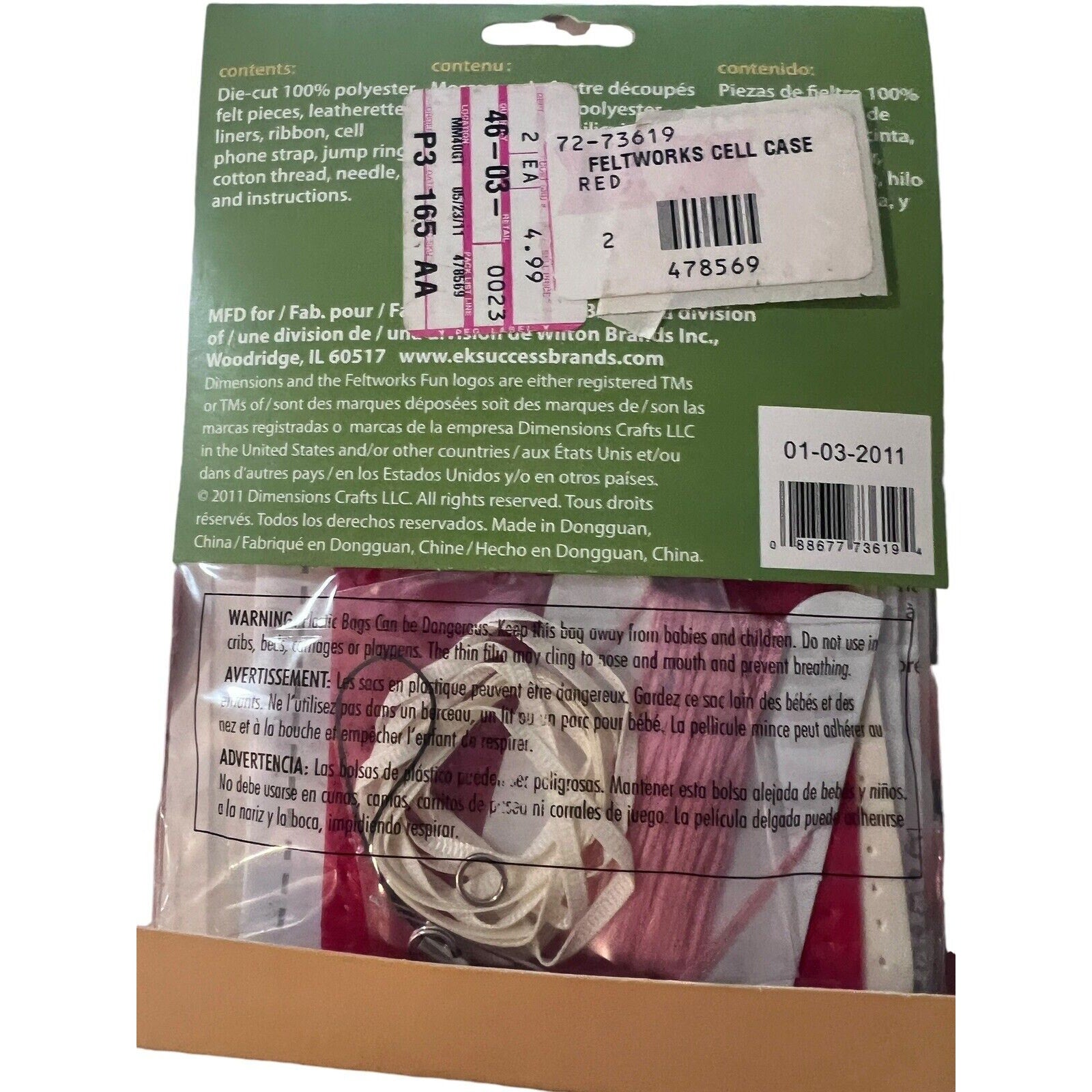 Dimensions Feltwork Fun Phone Case Cover Felt Embroidery Kit Kid Craft Red Flowe