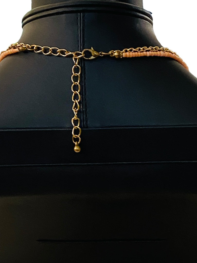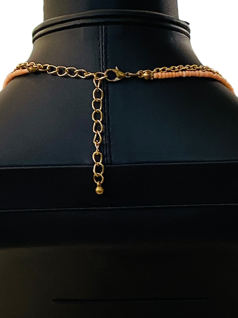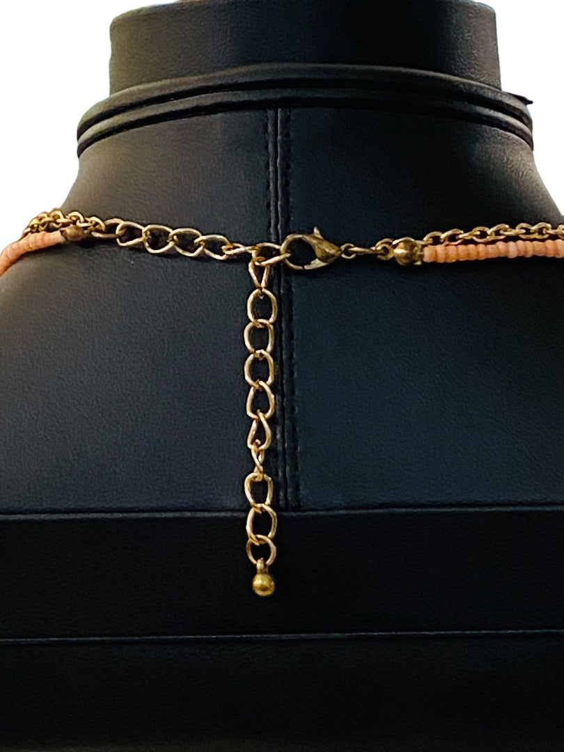 Dual Strand Layered Necklace Pink Seed Beads Goldtone 18-20"