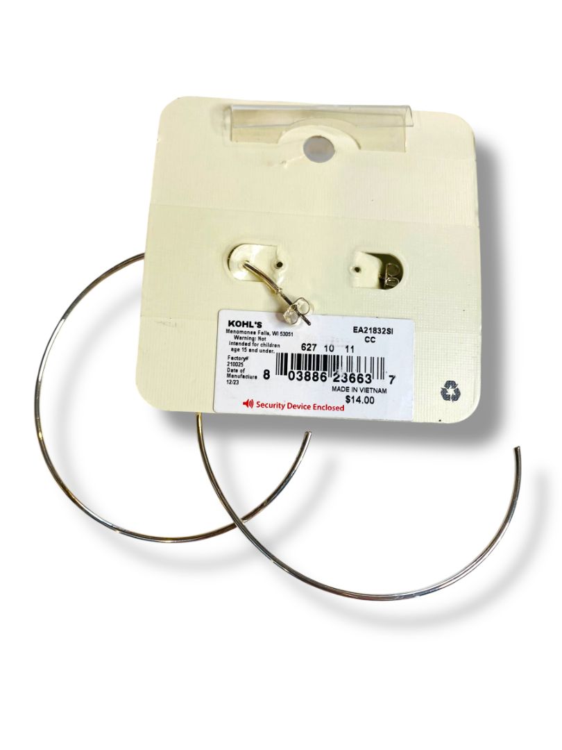 Emberly Post Pierced Silvertone Hoop Earrings 3" Diameter Thin New