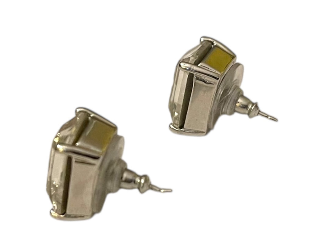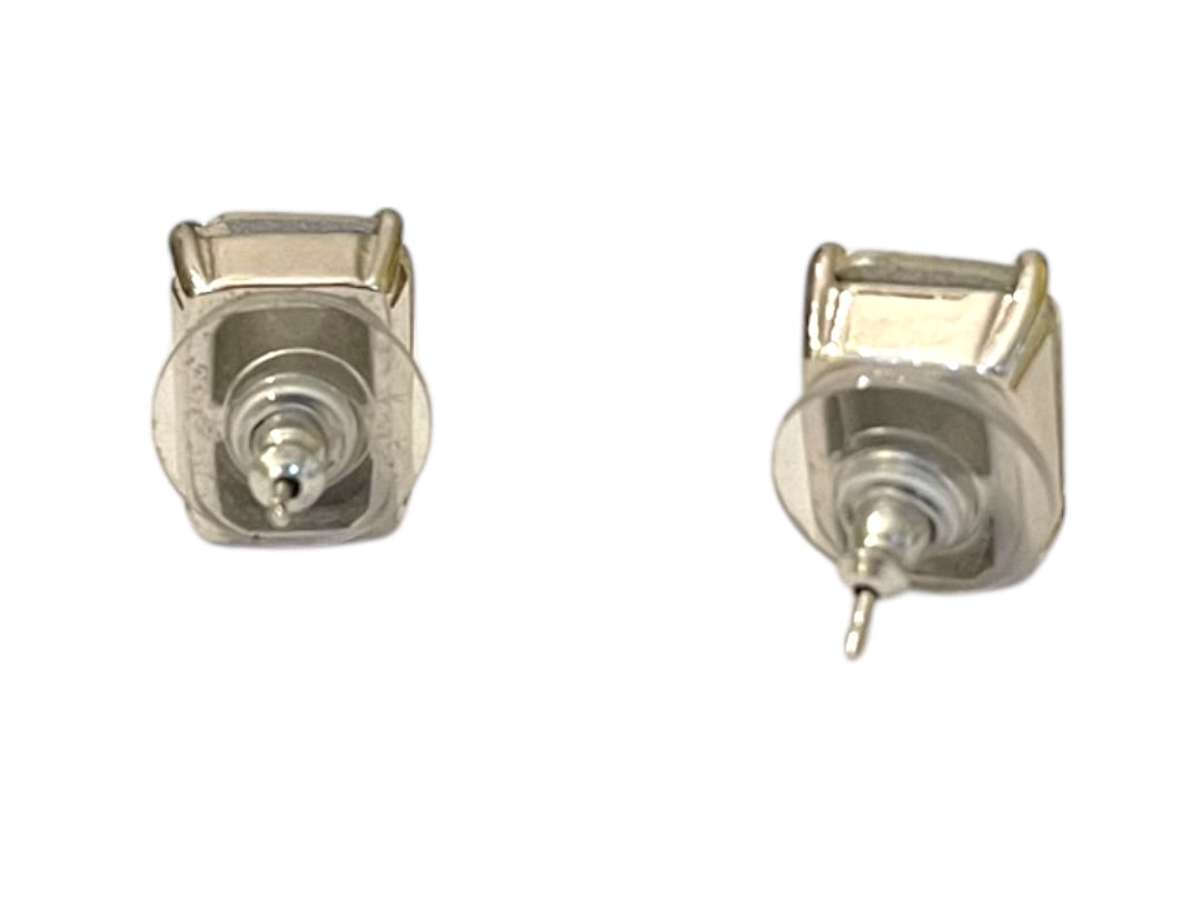 Emerald Cut Stud Post Pierced Earrings Clear .5" (14mm) Silvertone Setting