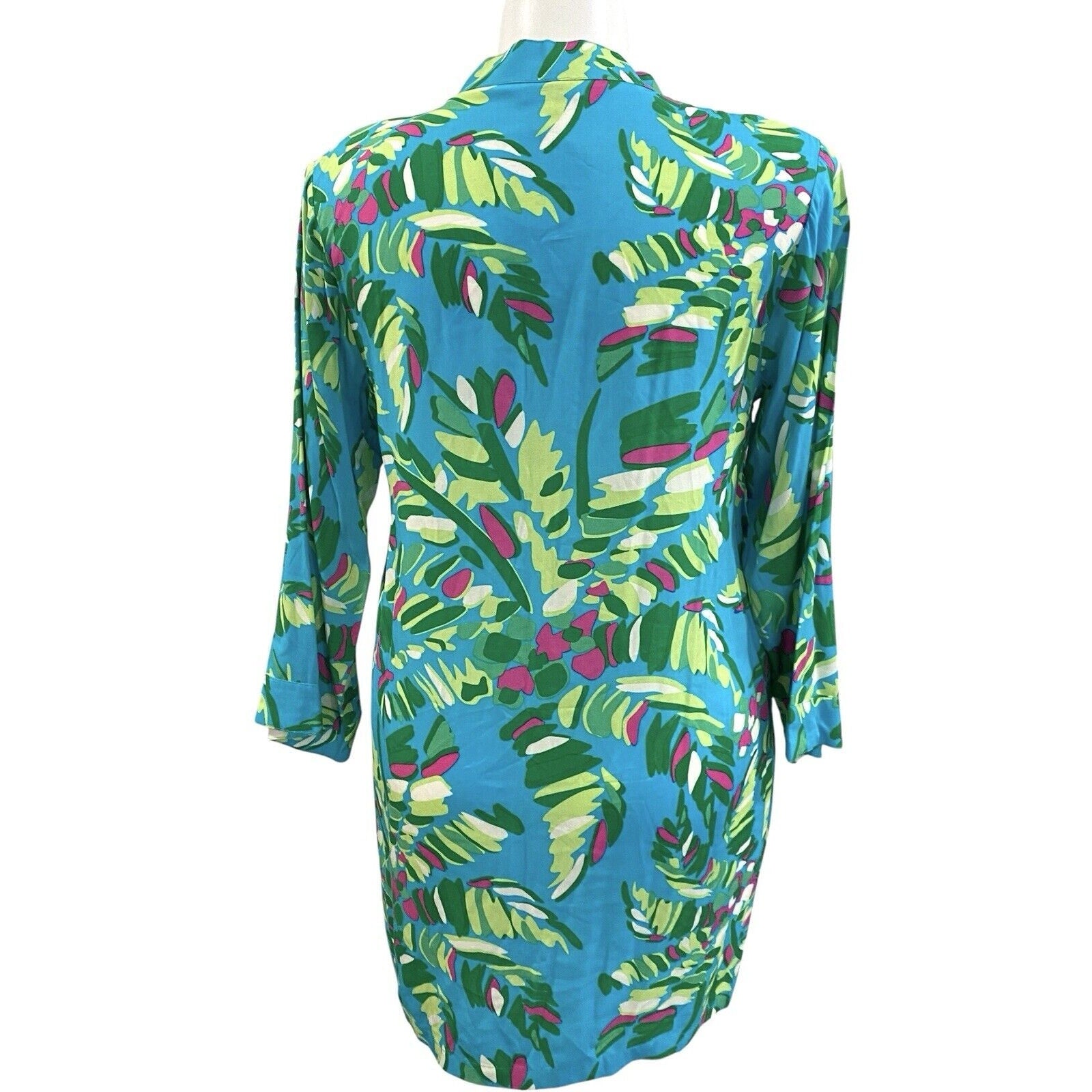 Escapada Living Tory Large Tunic Cover Up Top Aqua Blue Green Palm Tree NWT