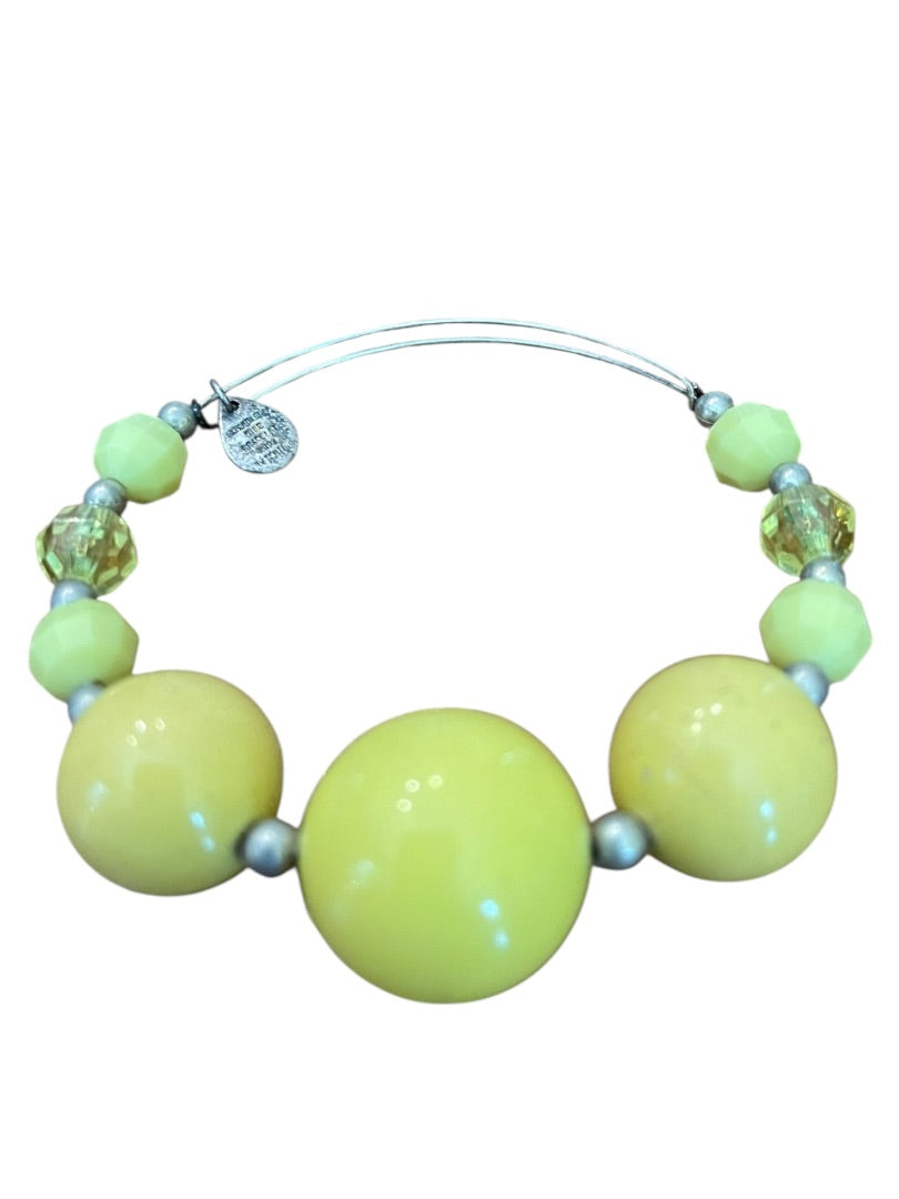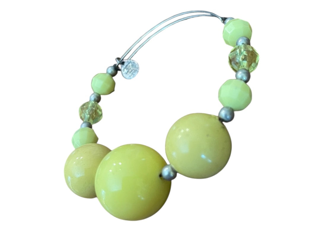Expandable Wire Bracelet 2003 Beaded Silvertone Bracelet Yellow