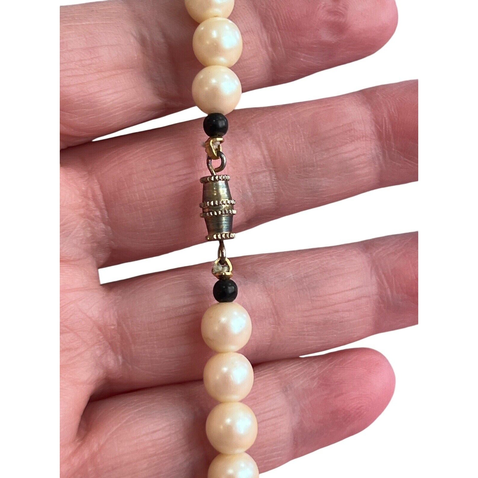 Faux Pearl Beads Black Painted Bird Floral Wood Pendant Strand Necklace Asian 29” long