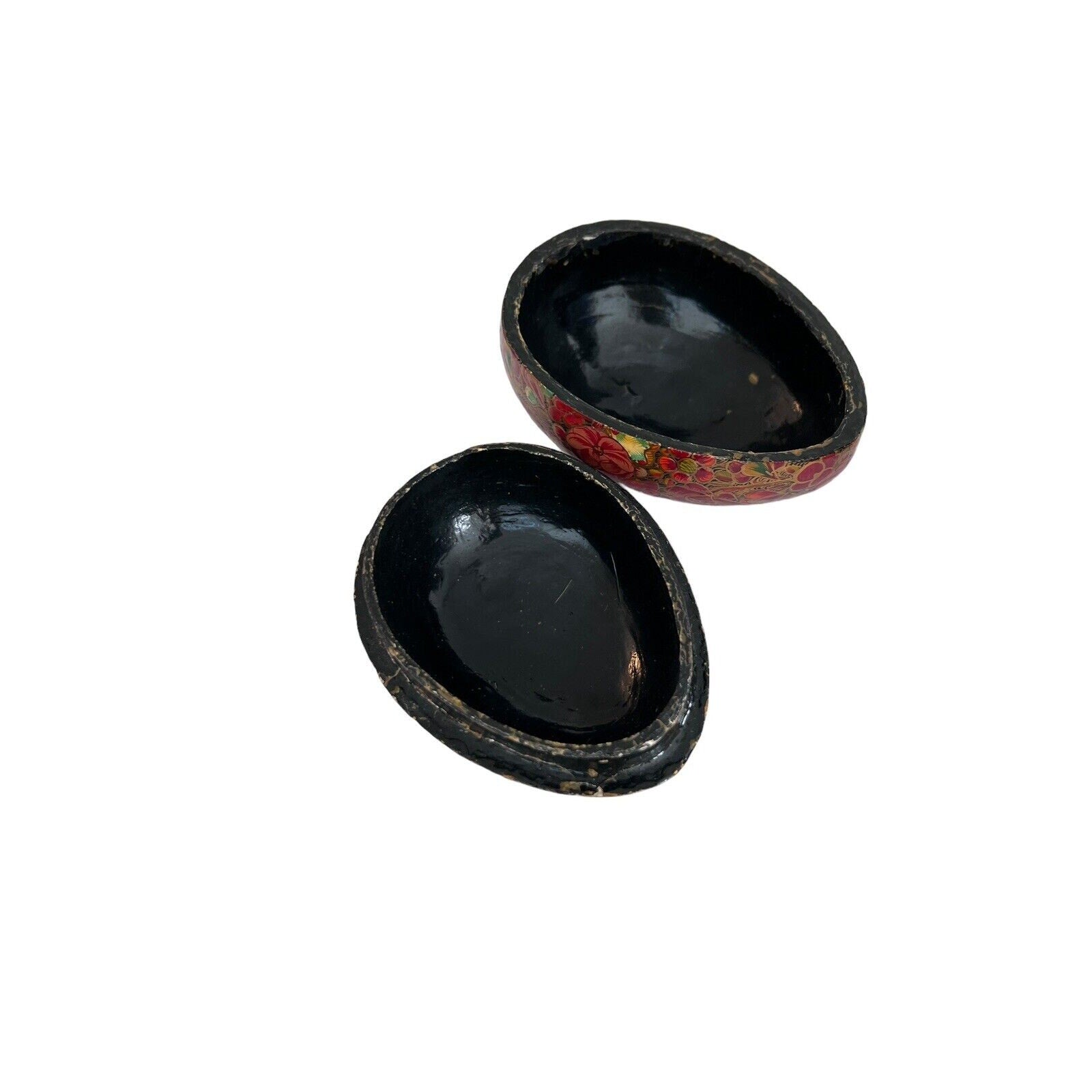 Floral Egg Kashmir India Boudoir Jewelry Ring Box Hand Painted Paper Mache Vtg