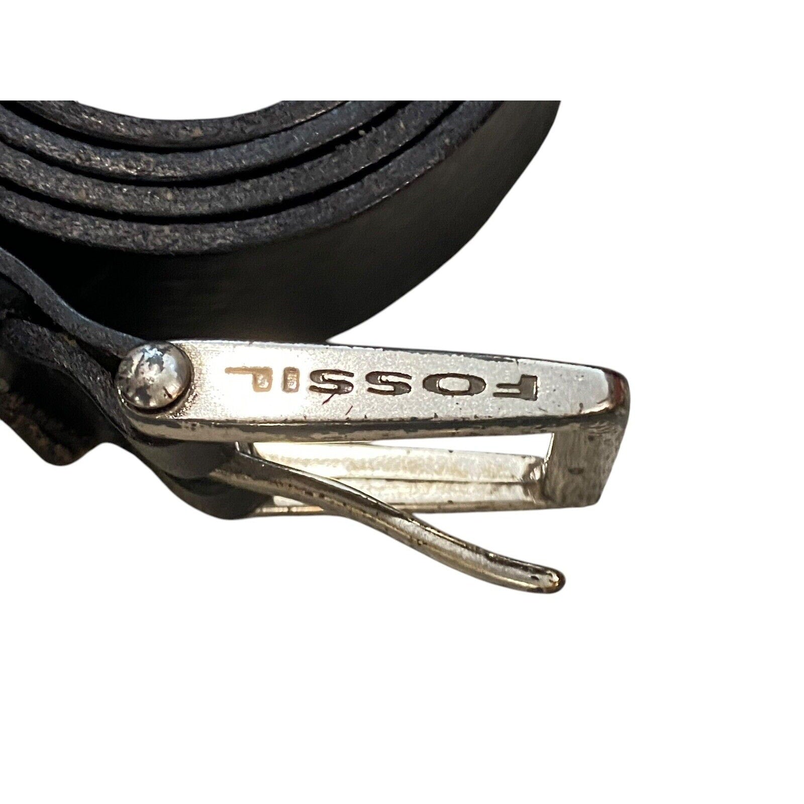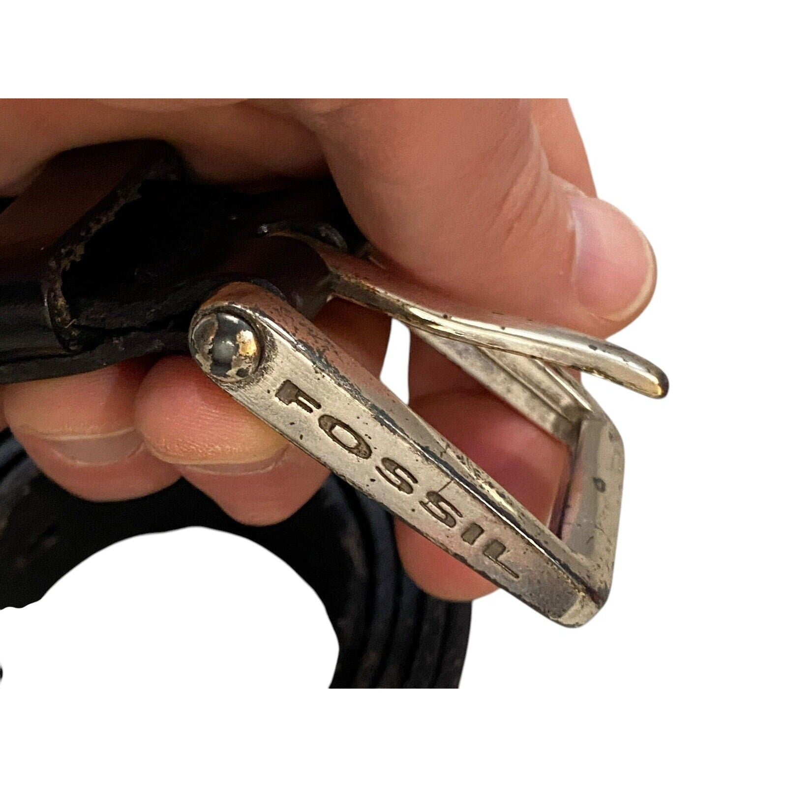 Fossil Black Leather Belt Size 42 Adjustable Wear On Leather And Buckle