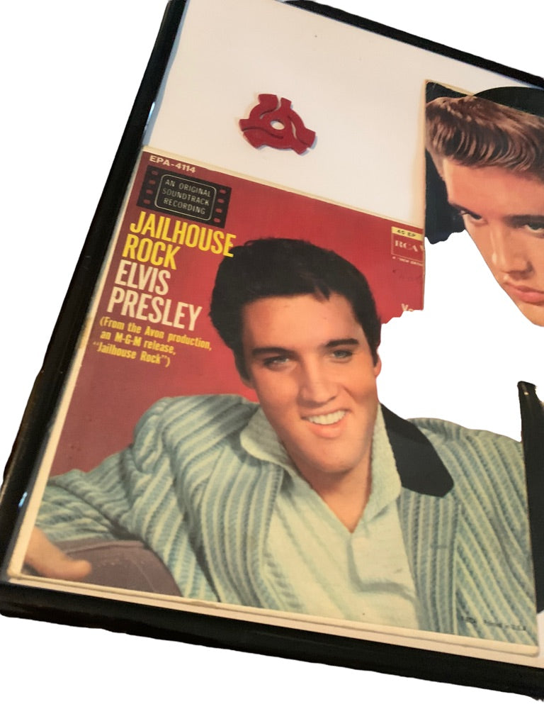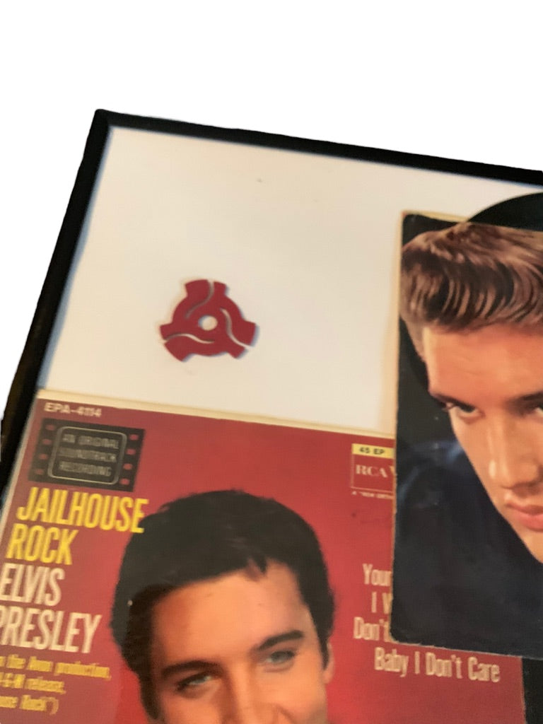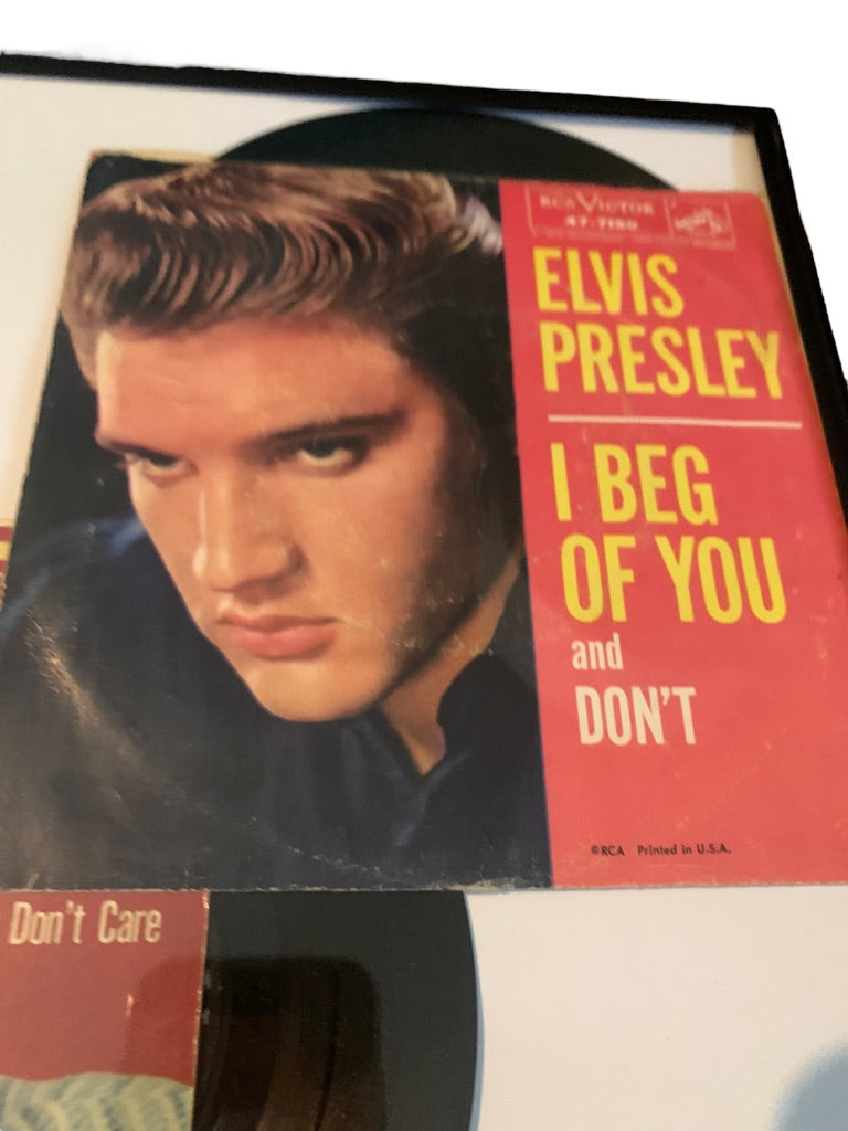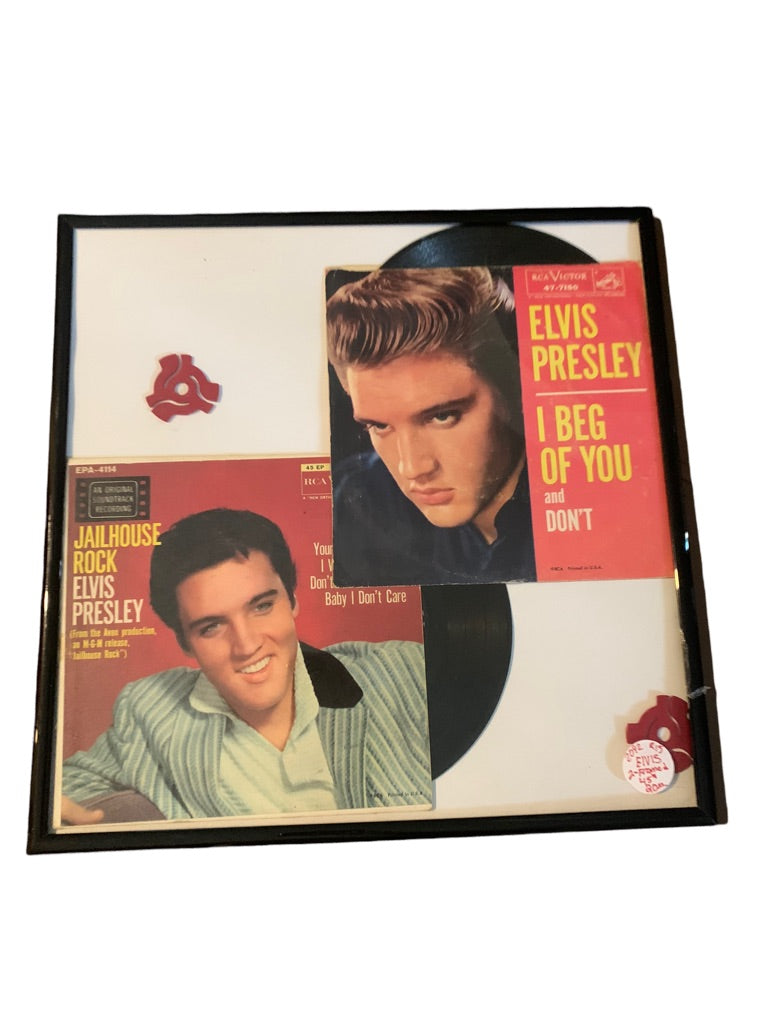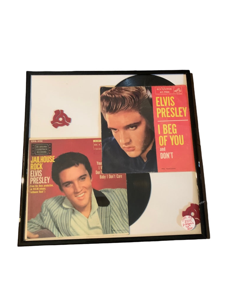 Framed Elvis 45s Vinyl Albums "Jailhouse Rock" and "I Beg of You"