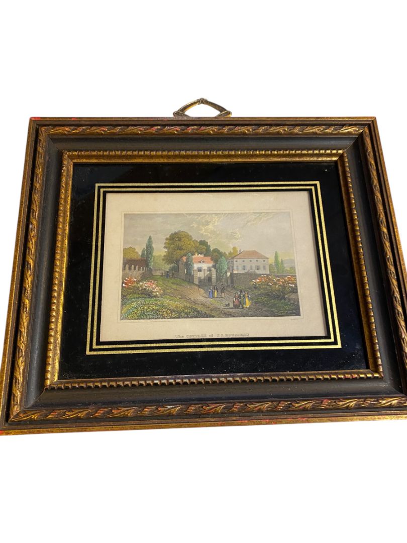 Framed Sungott Studios Martini Engraving Print "The Cottage of J.J. Rousseau" 15.5" x 10"