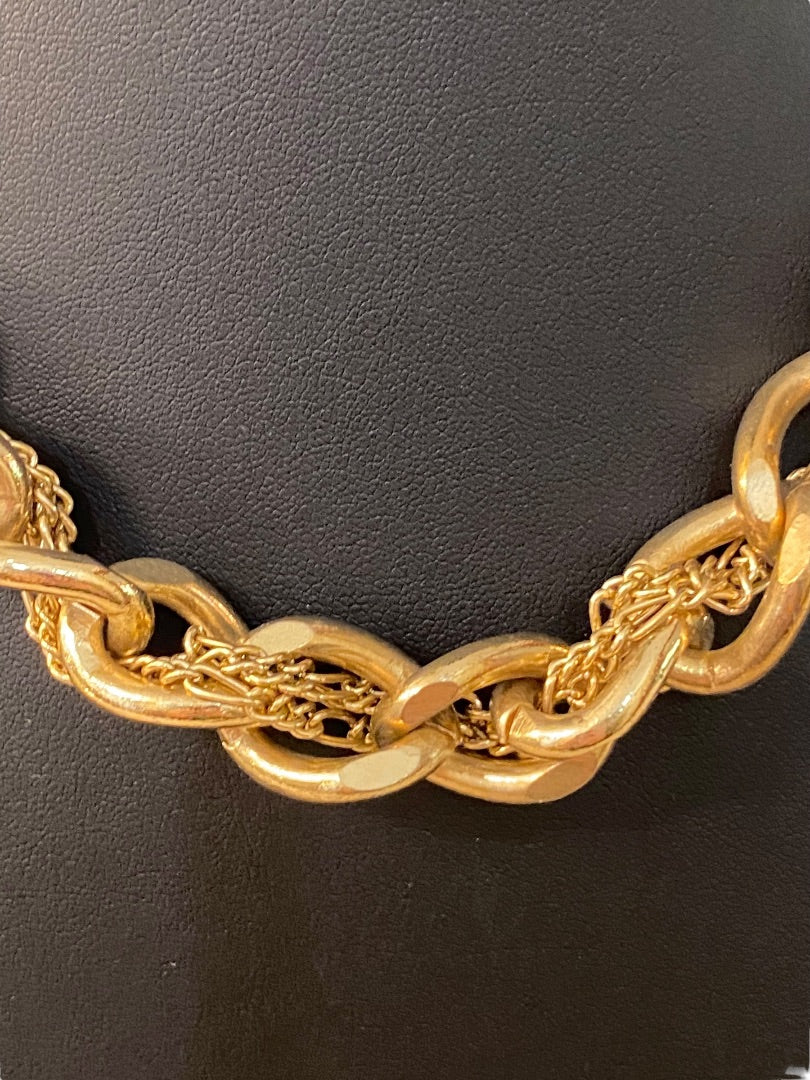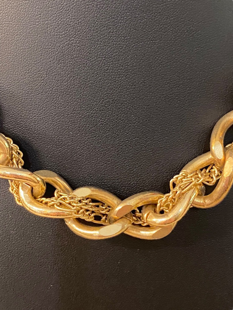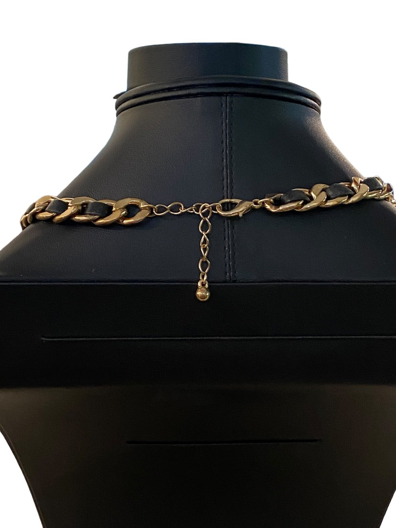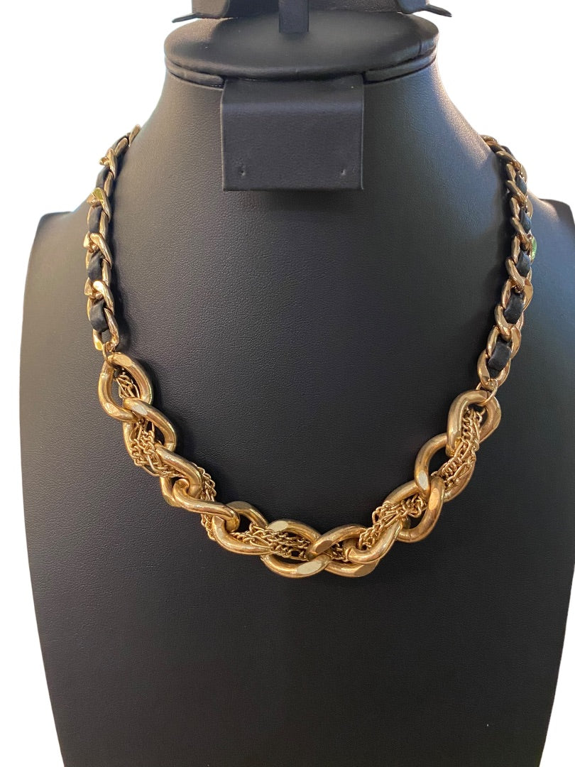 Goldtone and Black Cord Chunky Dual Strand Chain Necklace 17-19" Lobster Clasp