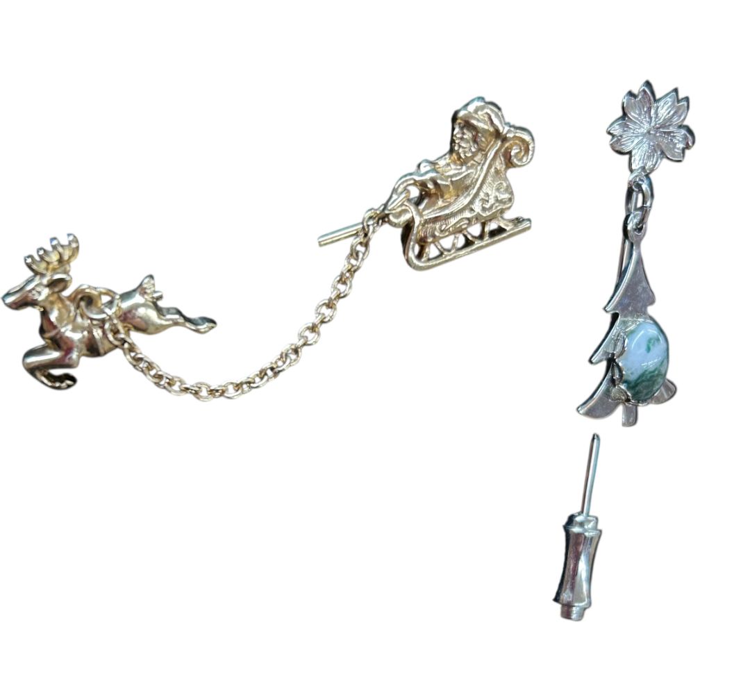 Goldtone and Silvertone Christmas Stick Pins Santa Tree 2.25"