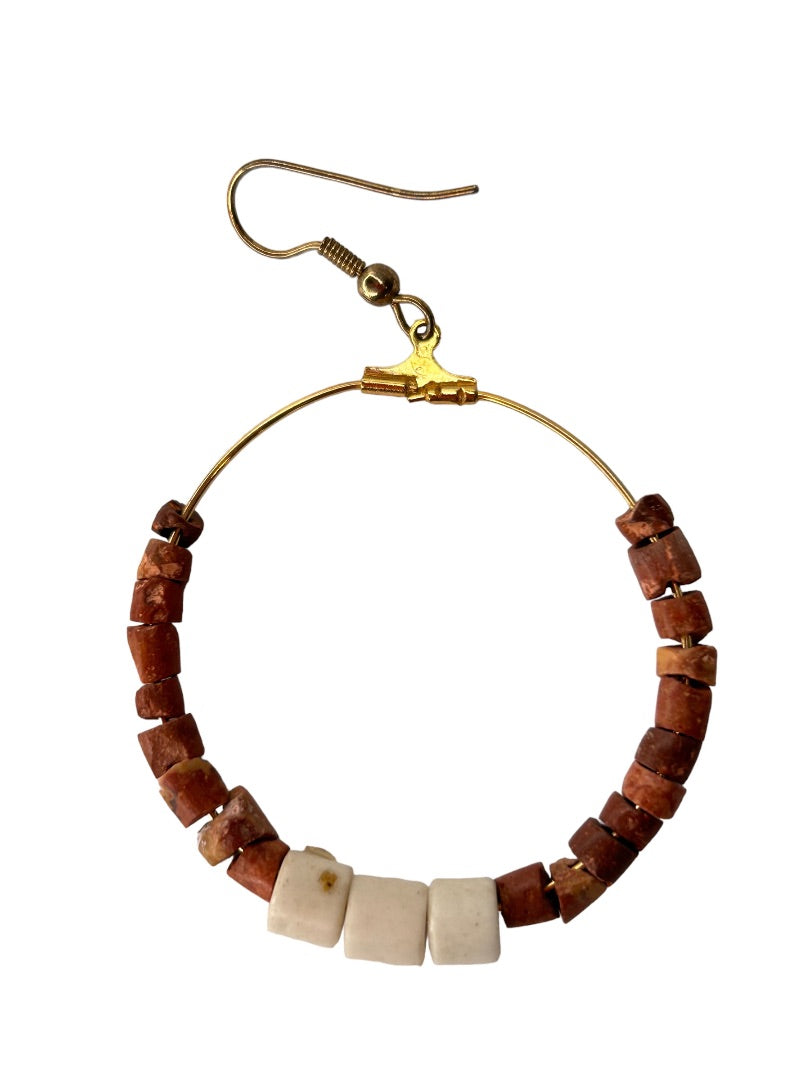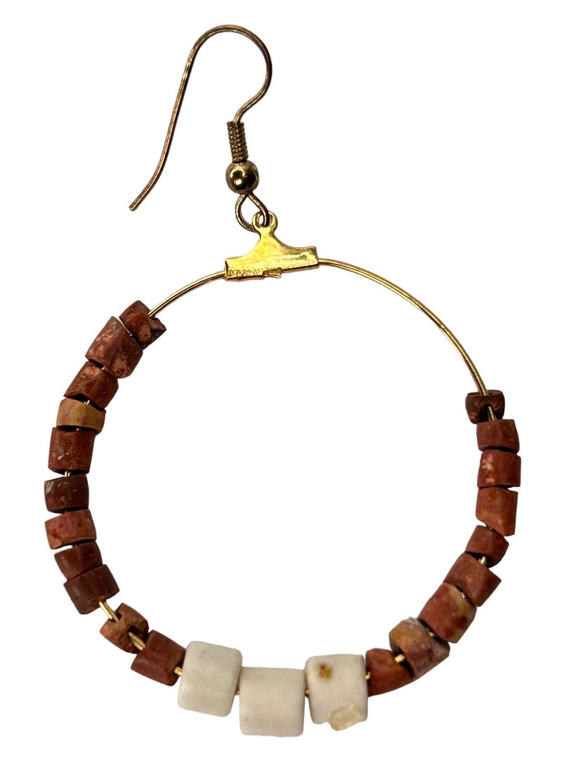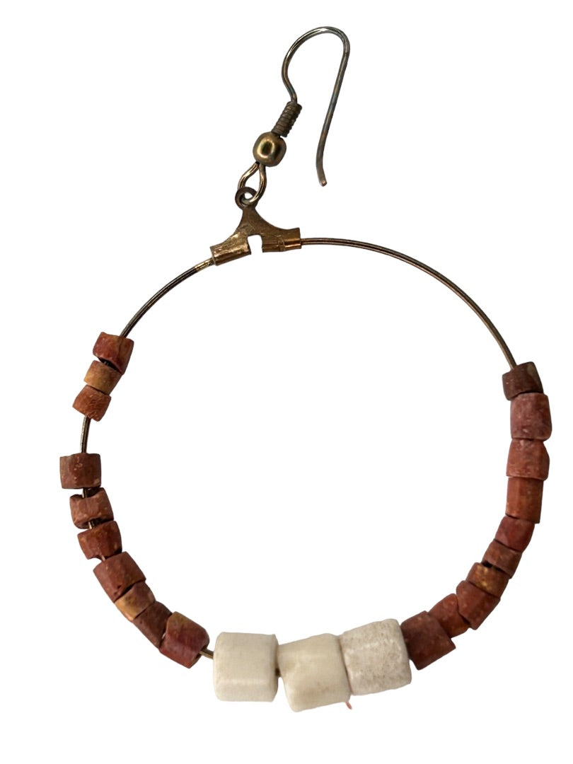 Goldtone Beaded Hoop Earrings Boho Pierced Hook 2.5" Drop Dangle