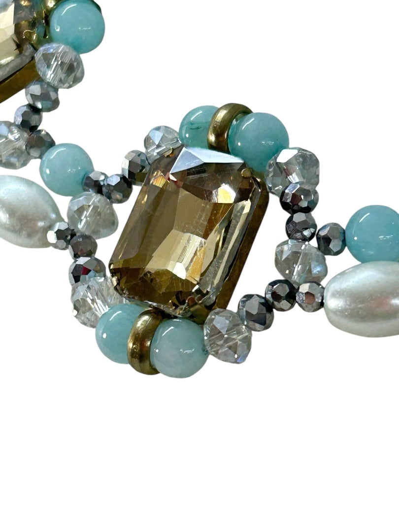 Goldtone Blue Statement Necklace 16-18 Inch Lobster Clasp Faux Pearl