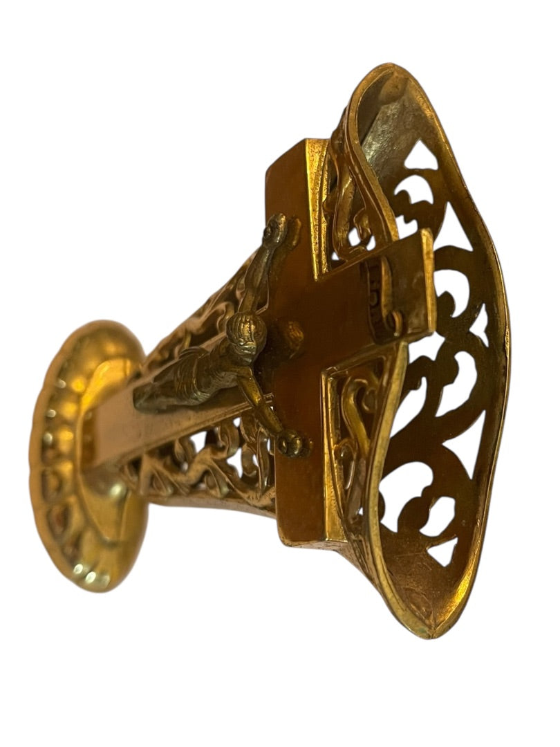 Goldtone Crucifix Vase Decor Scrolled Open 5.5"h