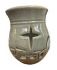 Hand Carved Wheel Thrown Green Art Pottery Nativity Votive Vessel Signed