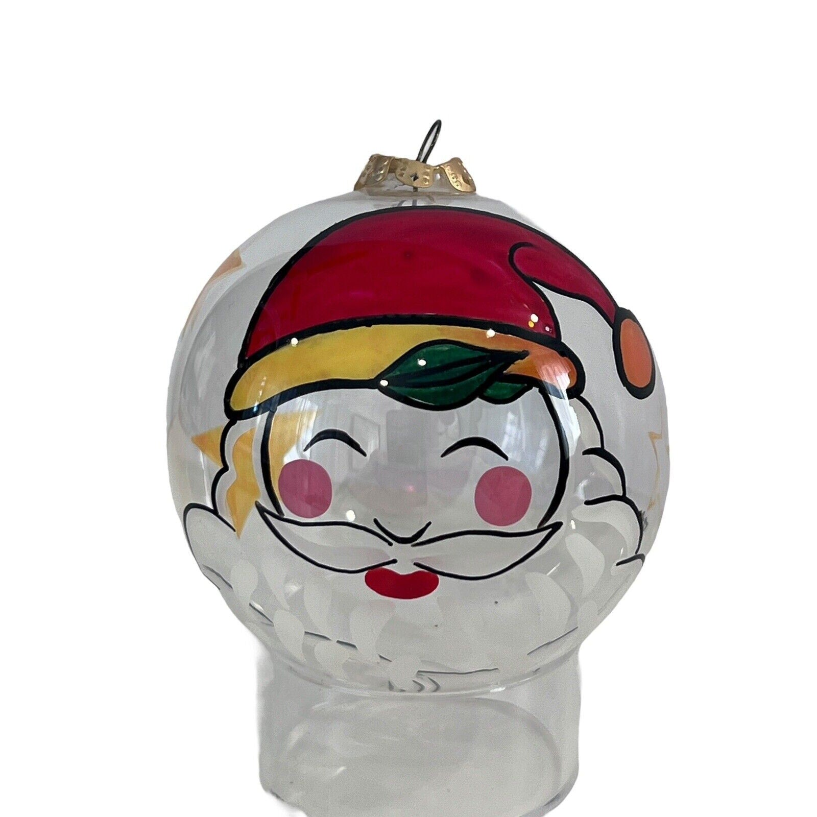 Handpainted Santa Claus Stars Ornament Christmas Holiday Clear Glass Ball Signed