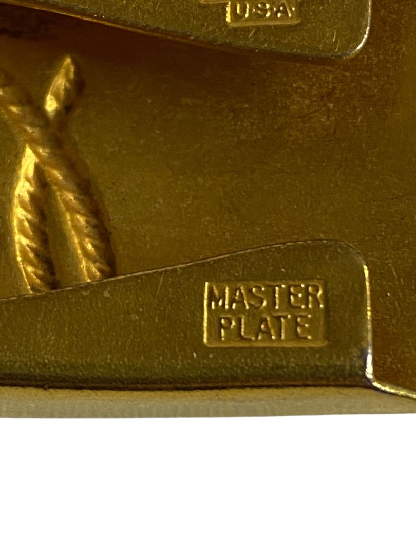 Hickok USA Vintage "R" Rope Tooled Belt Buckle Goldtone 2" x 1"