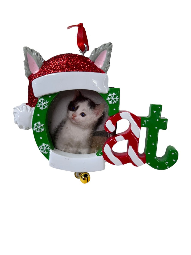 Holiday Ornament "Cat" Photo Frame Bell Cat  1.5" Holiday Christmas