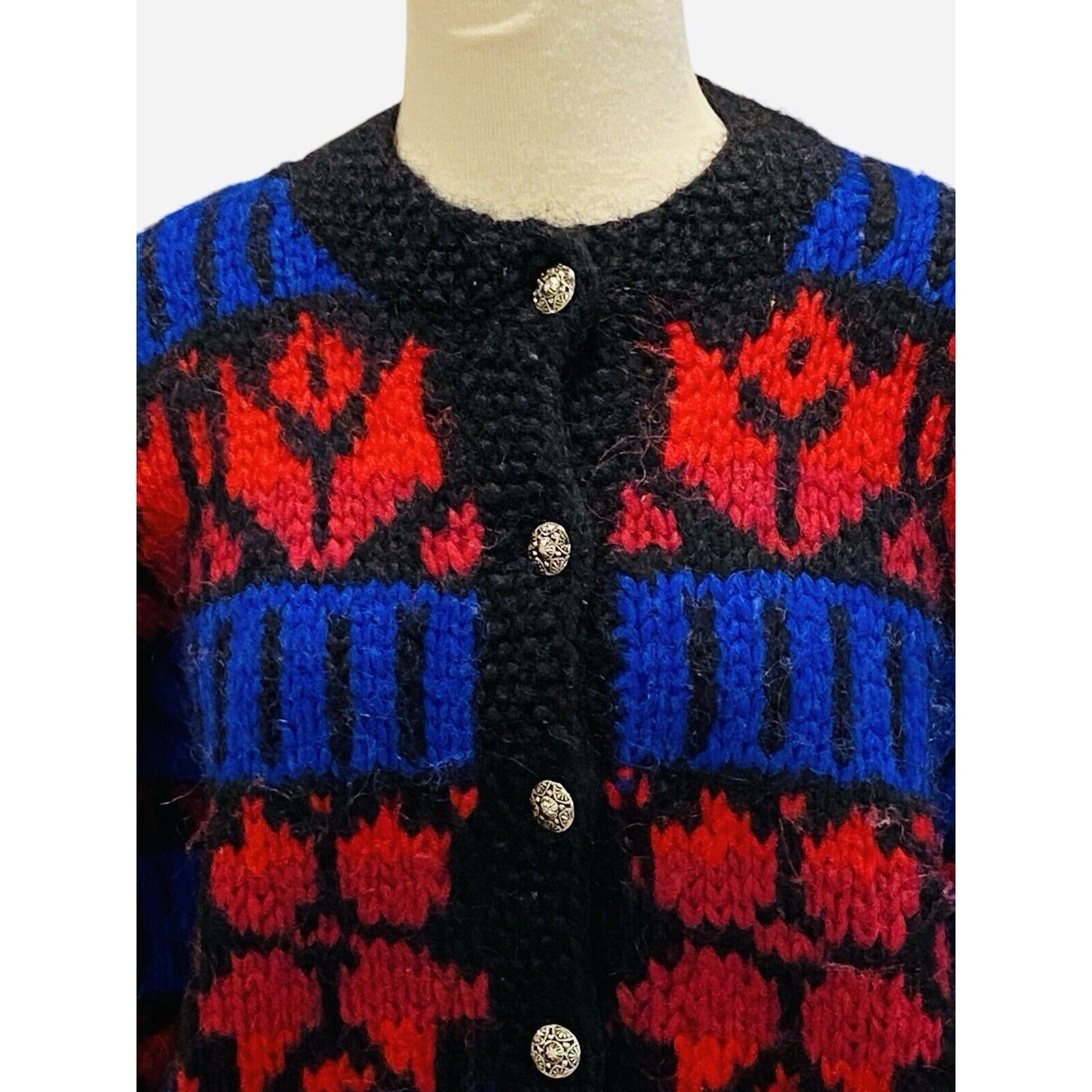 Icelandic Designs Wool Button Sweater Jacket Size Small Nordic Red Blue Back