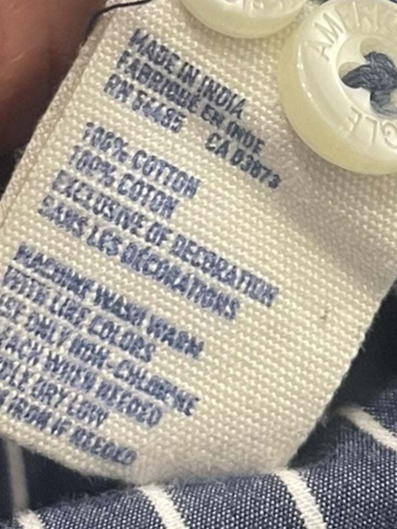 Large American Eagle Outfitters Striped Button Up Mens Shirt Blue