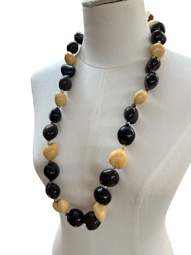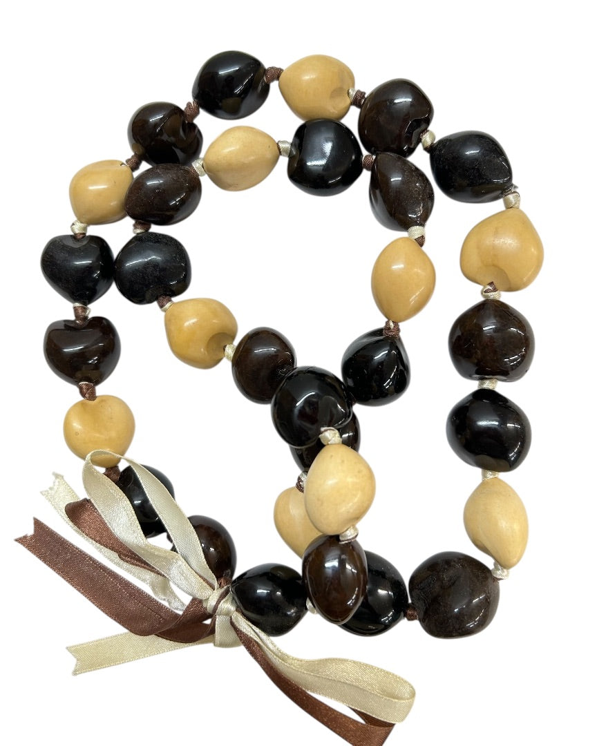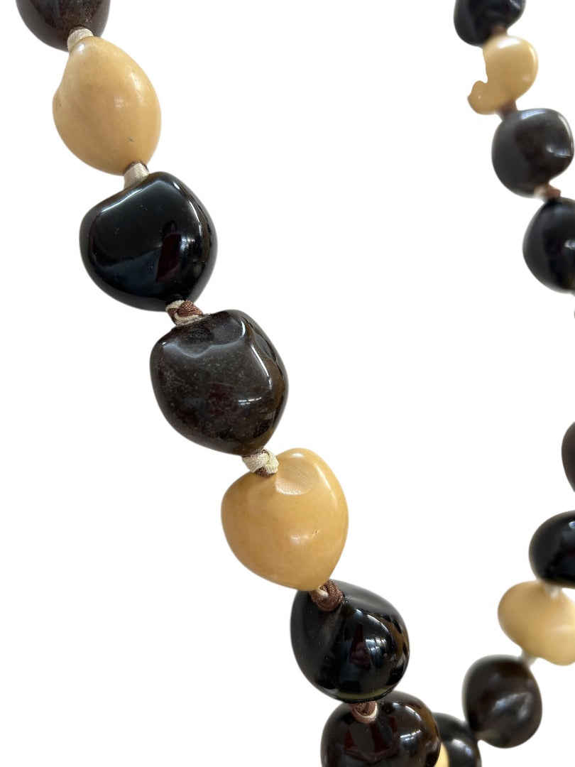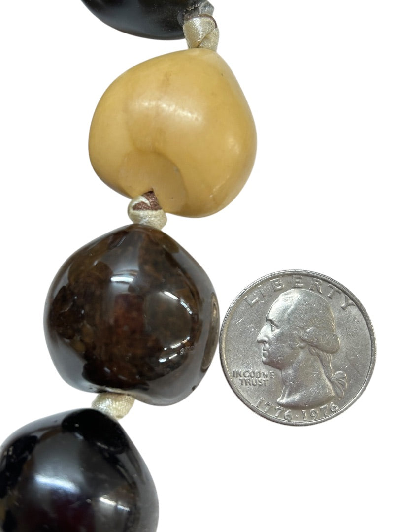 Large Hollow Brown Tan Lightweight Oversize Tie Neck Closure 33 Inch