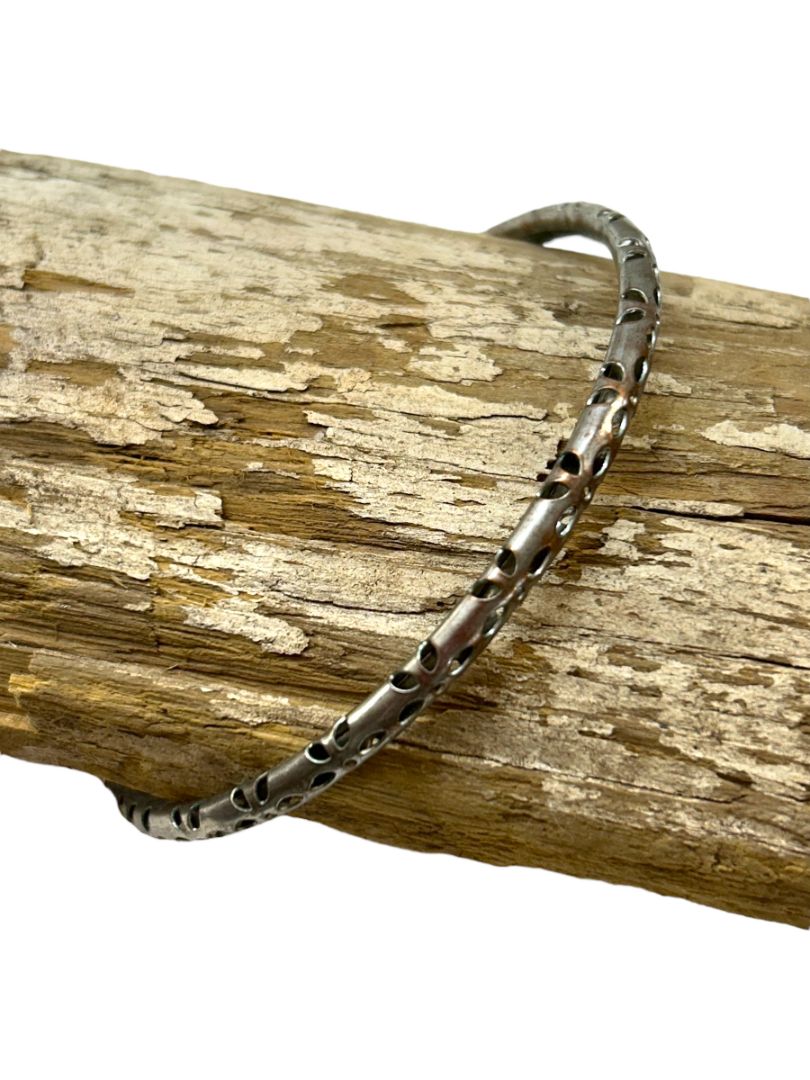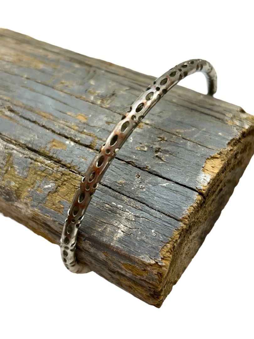Large Hollow Silvertone Bangle Bracelet Laser Cut 4mm