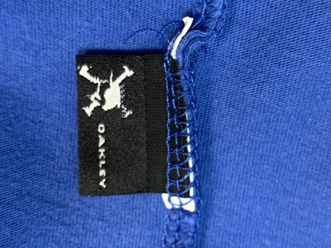 Large Oakley Tshirt Mens Blue Stripes Logo Custom Fit Short Sleeve