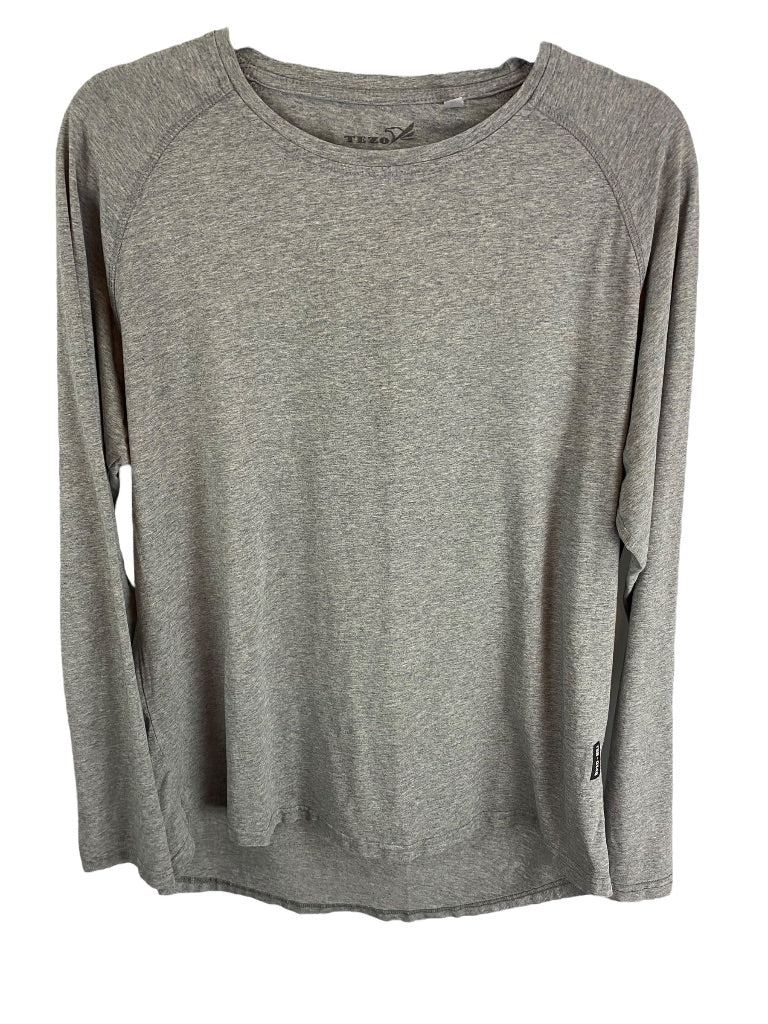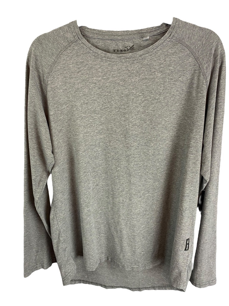 Large Tezo Men's Heathered Gray Long Sleeve Pullover Tshirt