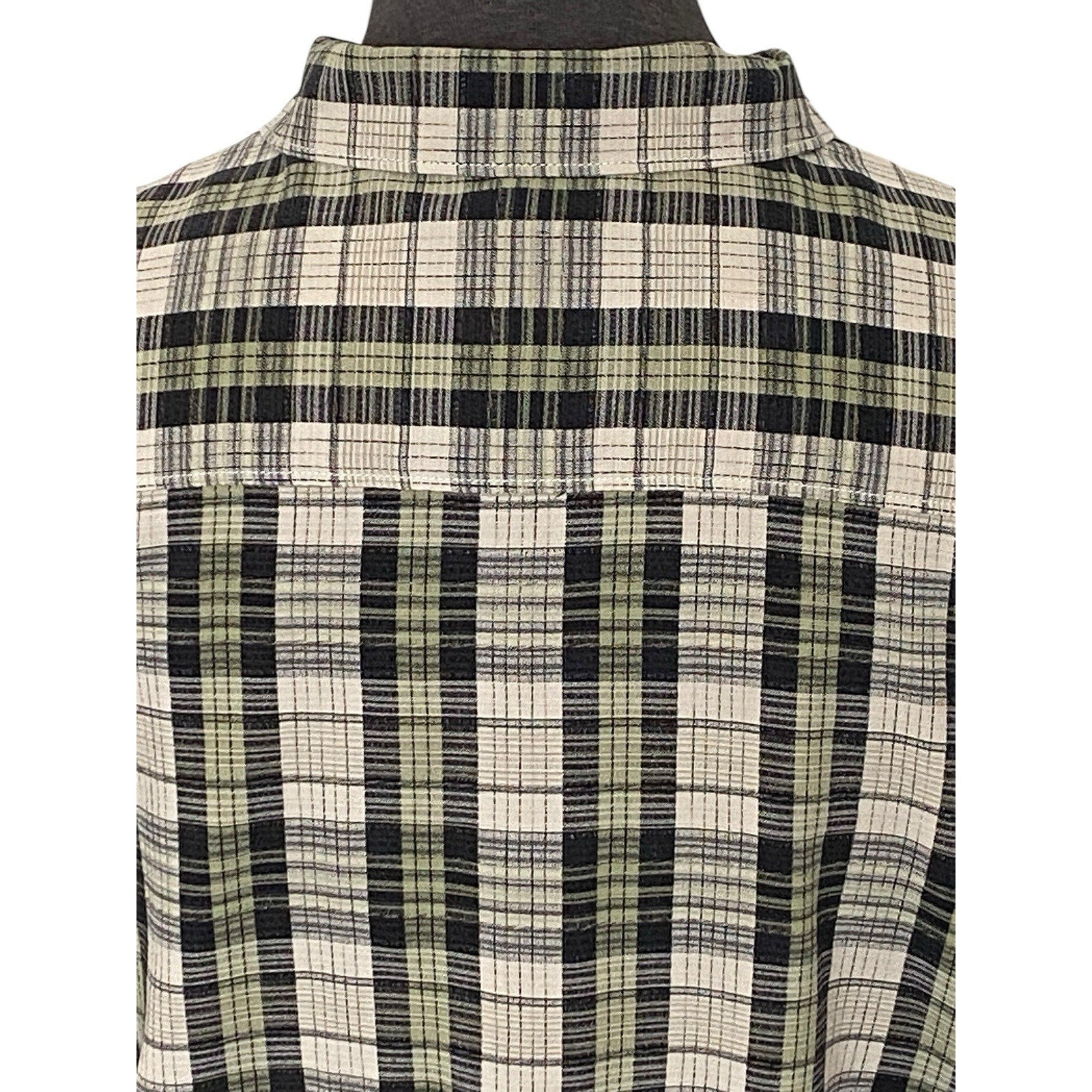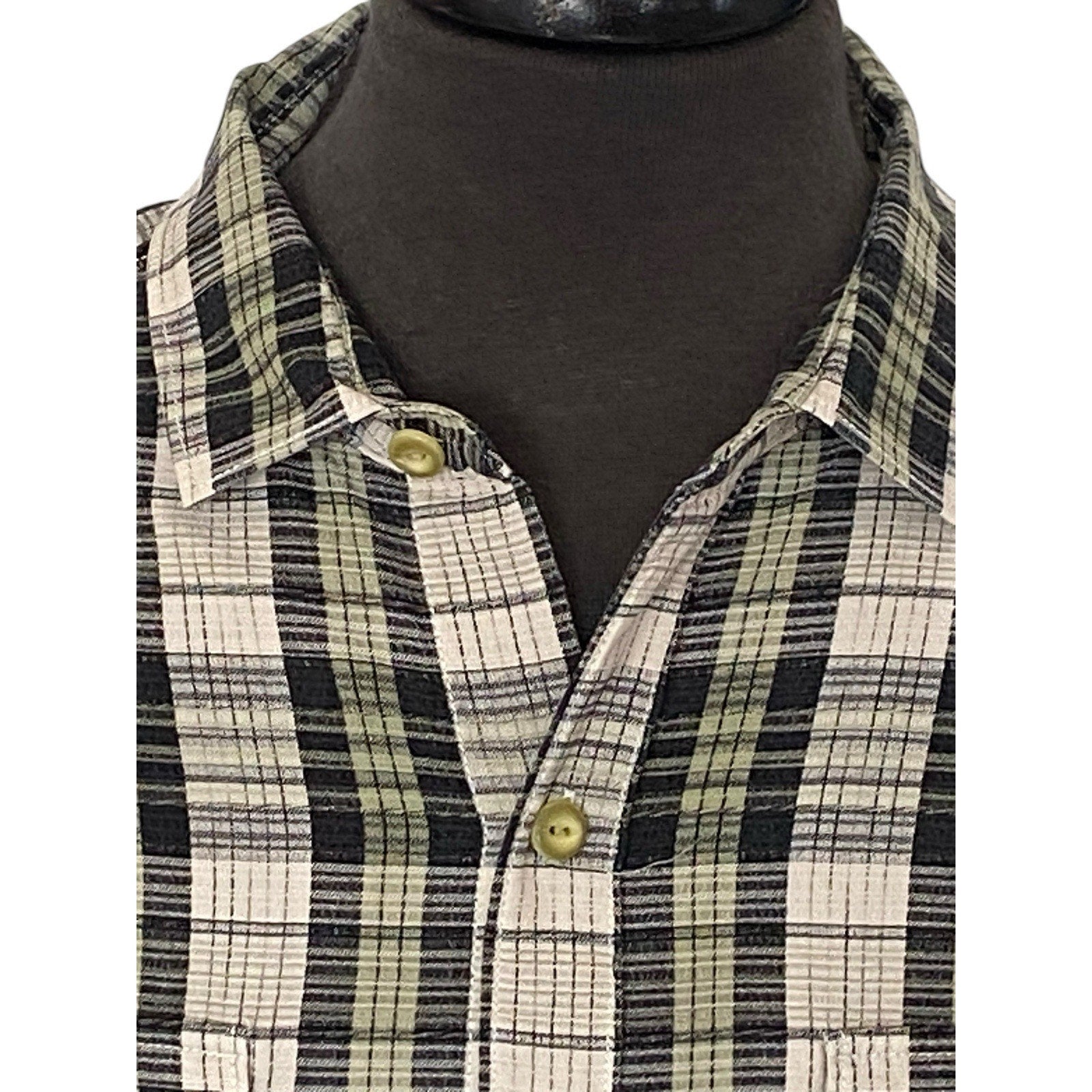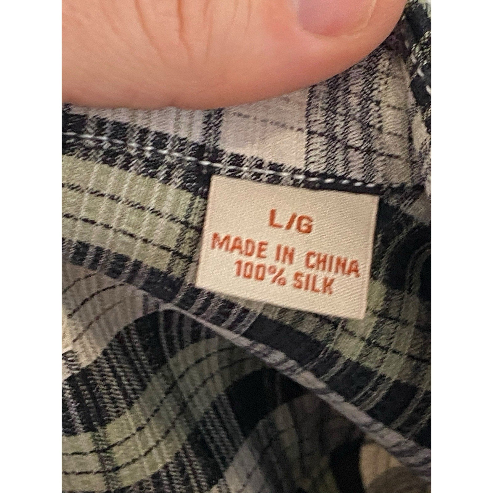 Large Tommy Bahama Button Up Shirt Mens Silk Short Sleeve Plaid Green Black Gray