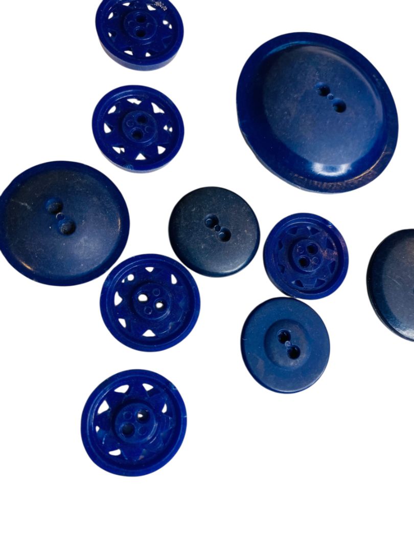 Lot of 10 Midcentury Plastic Buttons Assorted Dark Blue Craft Sew