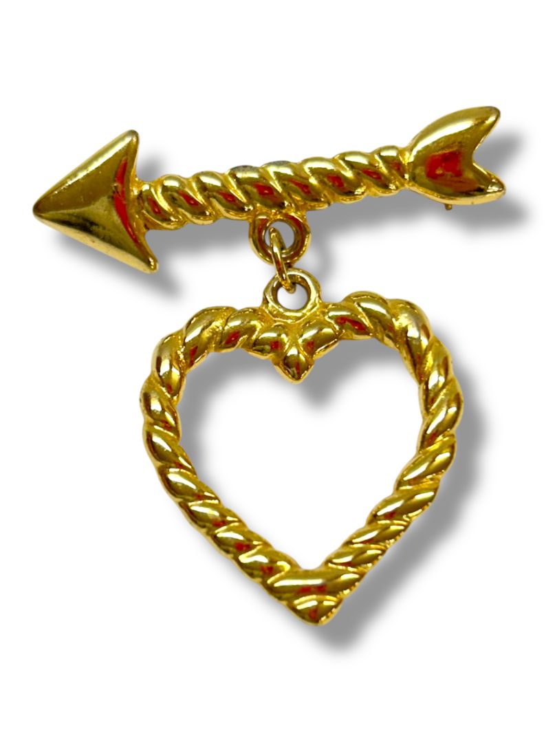 Lot of 2 Goldtone Heart Brooch Pins Variety Club 1" Rope Design 2"